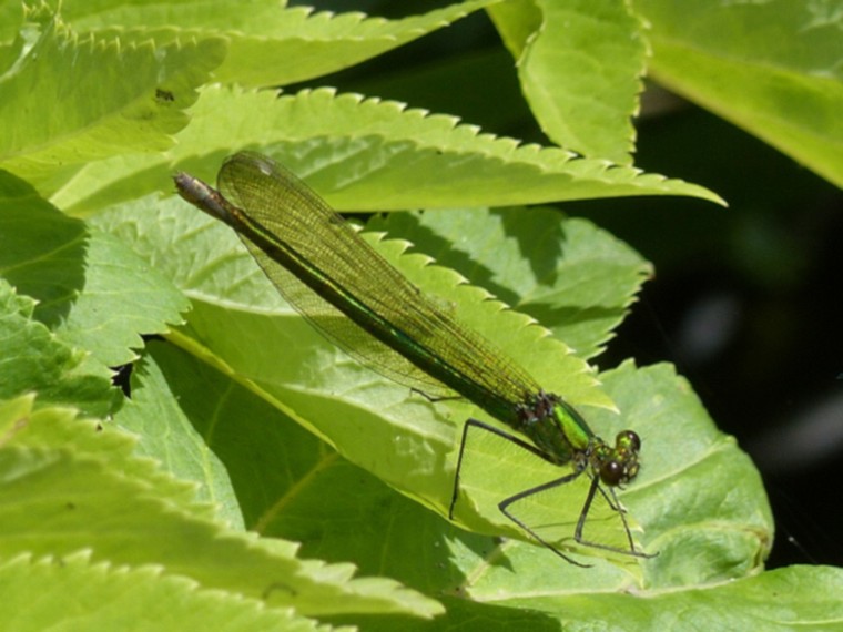 At least five Banded Demoiselles were present along the north bank of the Mersey at Woolston Weir this morning.