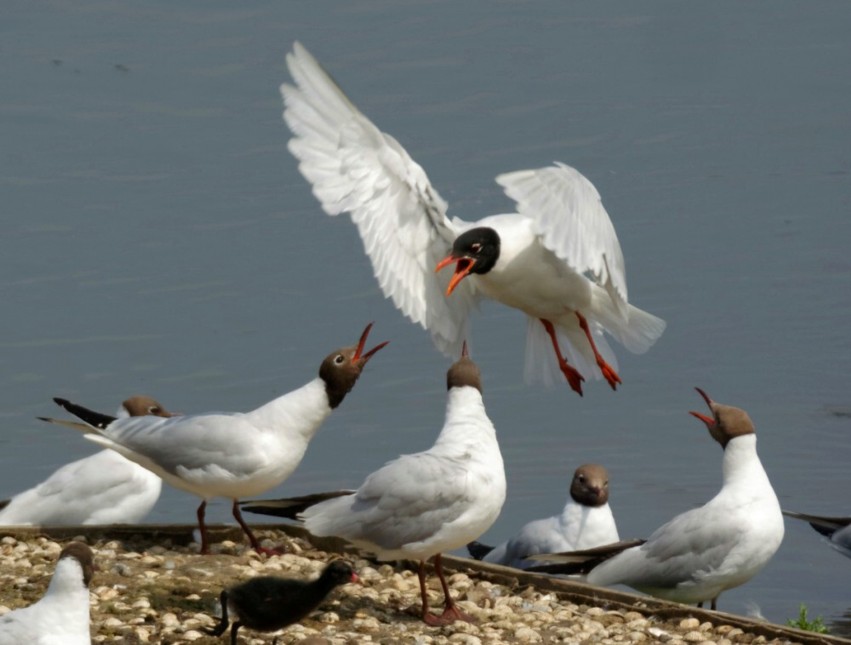 Return passage continues to gather pace on No.3 bed. After the 6 Little Egrets, 7 Common Sandpipers, Dunlin, Common Terns and Black-tailed Godwits which stopped over on during the week, this morning managed to deliver a nice surprise for one of our ringing team. After a quiet start at 6.30 am, post-breakfast drizzle then brought down 3 Common Terns and 1 Common Sandpiper. Swift numbers began to increment over the morning, with c.700 feeding up before moving south. As usual, when there are plenty of aerial feeders as potential prey, an elegant Hobby turned up, skimming past the Morgan Hide window. Of the resident birds, 2 Kingfishers, a Water Rail, a forlorn drake Ruddy Duck and 3 adult Black-necked Grebes feeding 3 young were the pick of the bunch. The real buzz, though, came when one of our ringers, Margaret Rawlins, heard a Spotted Crake persistently giving its rhythmic “whiplash” call from just west of the Rotary Hide. It wasn’t heard or seen subsequently but if relocated, we’ll let people know. The link is to a video of some bits and pieces from the last couple of weeks. You need a strong stomach to watch the opening sequence as a Moorhen decides to do away with one of the chicks from an adjacent brood.