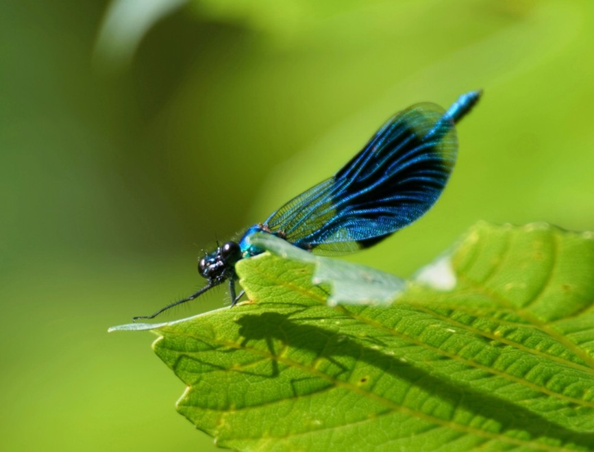 Spent a good few hours today, in glorious sunshine, wandering round No.3 bed. Autumn passage, added to the gradual lowering of the water level on the bed, means that waders are now a daily occurrence. Six Black-tailed Godwits, 1 Little Ringed Plover, 2 Snipe, 2 Green Sandpipers and 265 Lapwings were today’s tally. Other interesting sightings included: the regular Kingfisher in front of the Morgan Hide, a single female Pintail and 3 Peregrines (an adult and 2 juveniles) which drifted north over the bed, temporarily scattering the waders. A male Banded Demoiselle (see photo)on the South Bank was also a good dragonfly record for the bed.