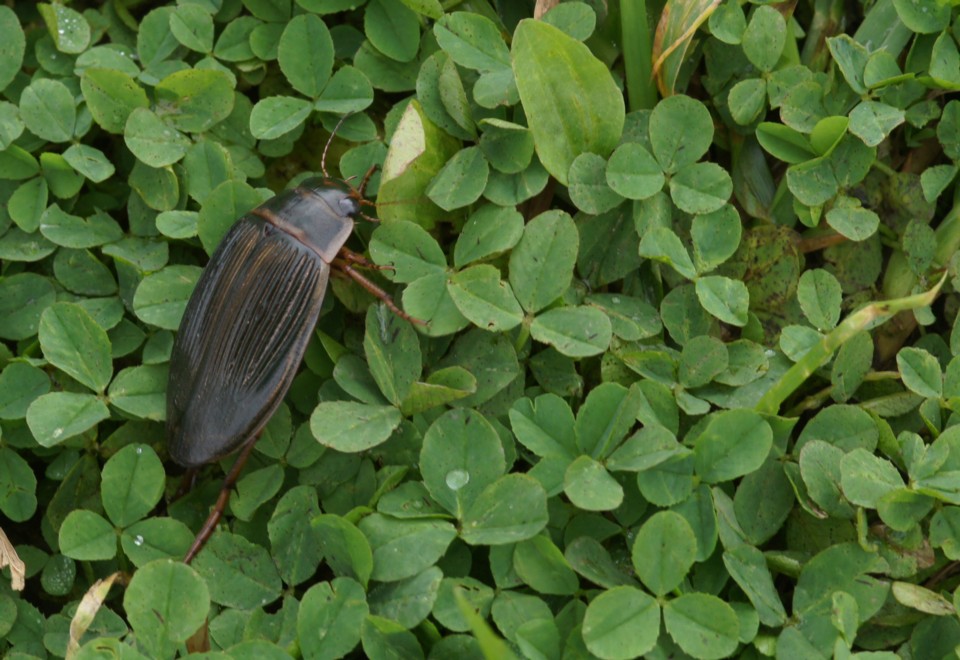 Photo of a Great Diving Beetle found crossing the track on No.1 Bed mid-morning. This specimen was over an inch long and is the second we have encountered this month.