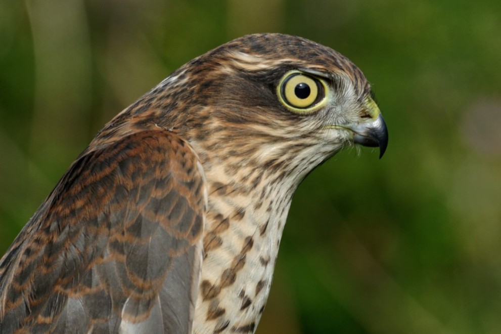 Photo of the juvenile male Sparrowhawk ringed on No.3 bed today.