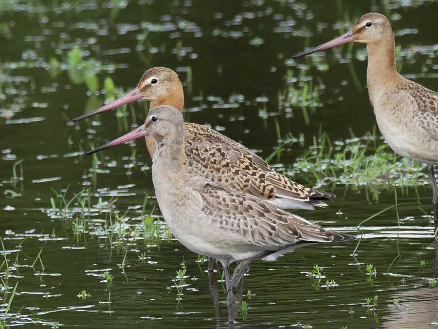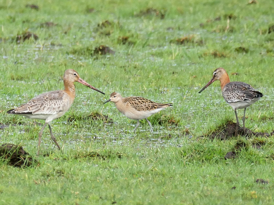 During the WeBS count on Sunday, Derek Britch observed 27 Black-tailed Godwits in the flooded horse paddocks north of no.2 bed. Today numbers had increased to 34 and they had been joined by one Ruff