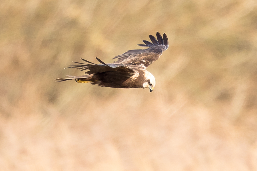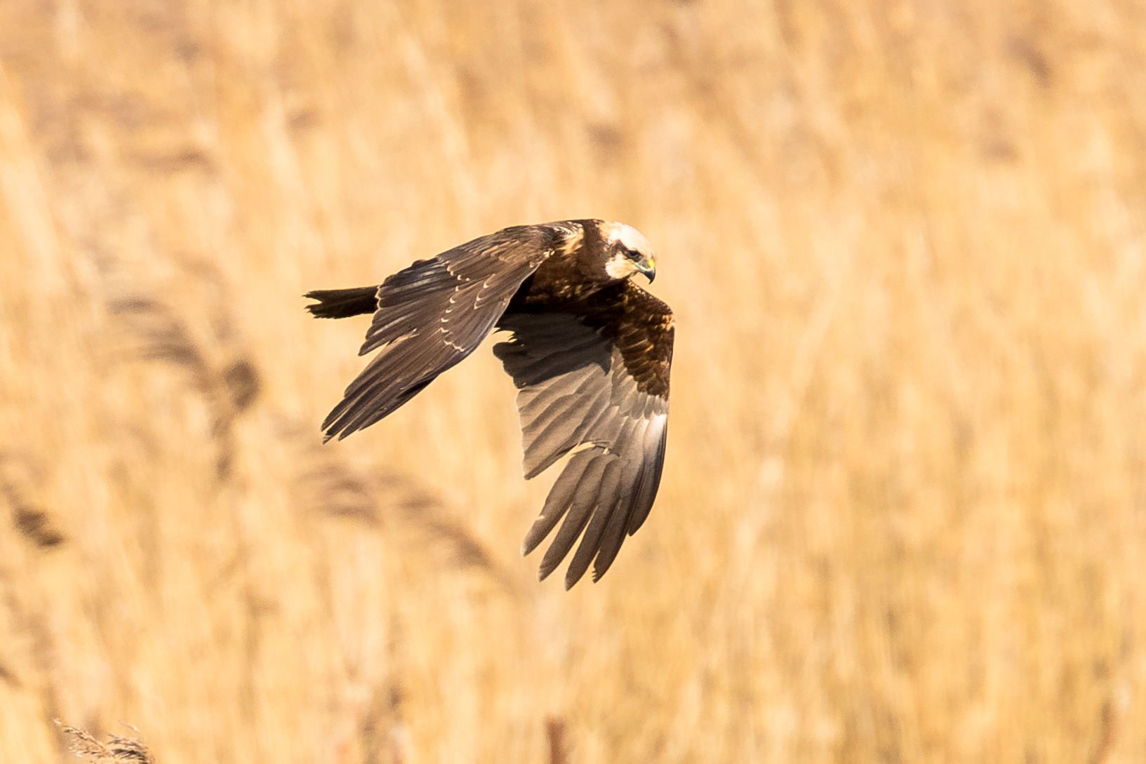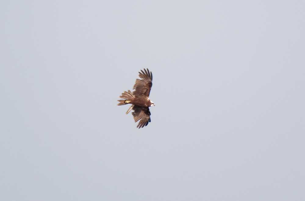 Another rewarding morning on No.3 bed, starting at dawn with most of the lagoon showing a thin skim of ice and the wildfowl working hard to keep a few small pools open. Of these, the most interesting were the Shoveler, with 82 in tight groups, showing their characteristic, synchronised spinning feeding behaviour (I’ll post a video of this tomorrow). The highlight, though, was the appearance, mid-morning, of the Marsh Harrier which first arrived on Wednesday. It treated us to an extended hunting display, attracting the attention of the 300 or so Black-headed Gulls on the bed and flushing a similar number of Teal from cover. This bird is in heavy wing and tail moult, which is unusual at this time of year (see record shot). A couple of Oystercatchers, which dropped in and settled onto one of the nesting rafts, raised hopes that we might see them as a breeding species this year.