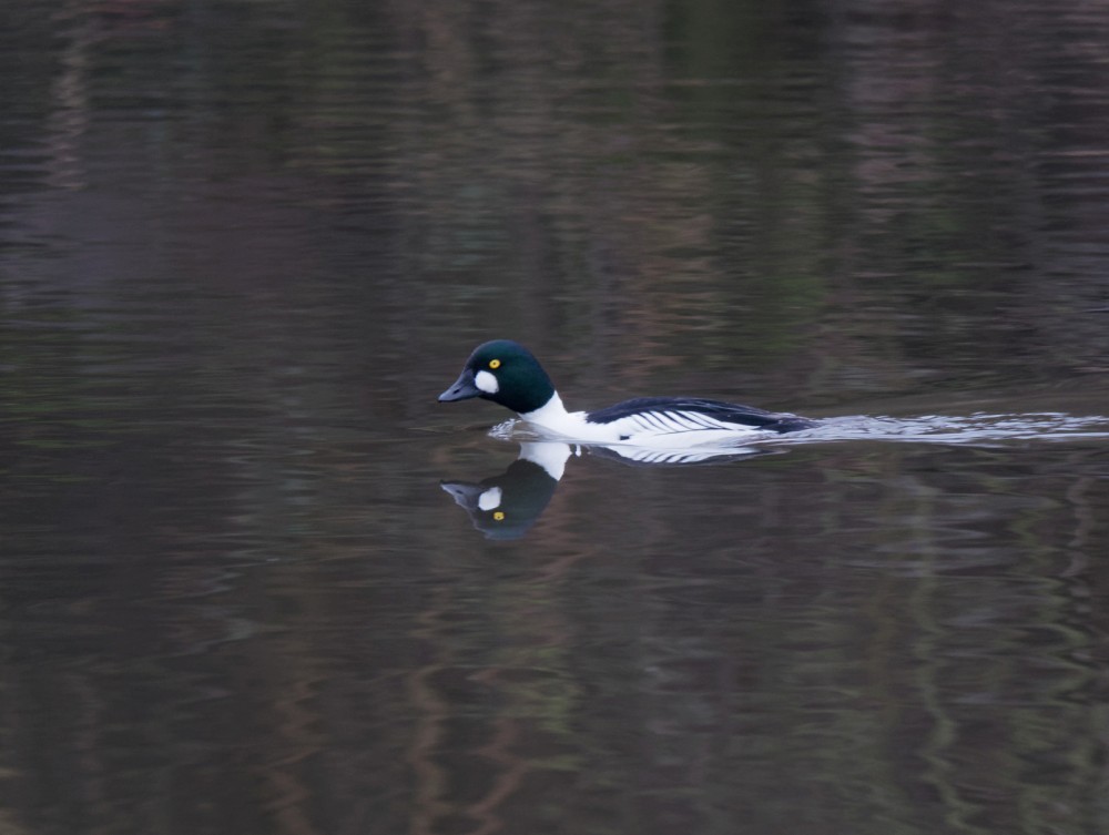 On a day of brilliant light there was a noticeable influx of wildfowl to No.3 bed. Water levels are at their highest at this time of year and the bed becomes highly attractive to diving ducks, as well as to the usual dabbling ducks like Teal, Shoveler, Gadwall, Mallard and Shelduck. While today’s count of 80 Pochard is the year’s highest so far, this was dwarfed by the 600 Tufted Duck counted by Dave Hackett across the whole Reserve. At the Weir Basin, three Goldeneyes added to the variety of wildfowl present. Other birds included 30 Bramblings, most of which were around the North Meadow, 1 Raven tumbling high over the east bank and 1 female Peregrine which flushed most of the wildfowl and brought c.600 Teal out of cover in the reed-bed.