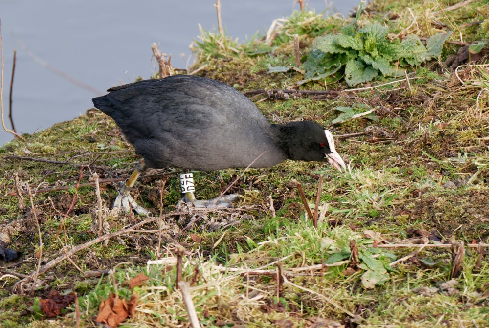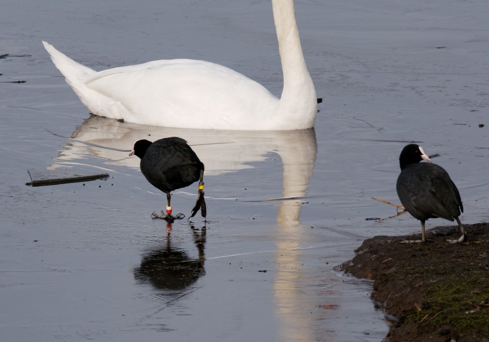 Yesterday on No.3 bed, two colour ringed Coot were wandering round on the ice. We’ve now had the results back from Kane Brides who originally ringed them. The white Darvic ringed bird (DZF) was ringed at Whalley Range on 29/10/16.