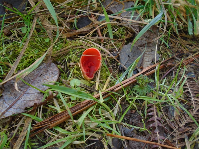 There was certainly plenty of interest today, starting with 2 Great Black-backed Gulls and a Herring Gull at Latchford Locks. Walking along the canal bank Robin, Dunnock, Song thrush, Chaffinch and Greenfinch were all in song and spring was definitely in the air. A large flock of Tufted Duck was at Bollin Point and 2 Woodcock were flushed from the top of Butchersfield Tip. Along the river to the north of No.1 bed 2 Grey Partridge were a good find and the resident Little Grebe was again trilling at the Fish Refuge. There were some good totals of wildfowl with a minimum of 650 Tufted Duck (probably 770), 28 Pochard, 36 Shoveler and 78 Canada Geese. A total of 55 Robins was also a good count, most of which were in song. Photo; Scarlet Elf Cup on No.4 bed (there were also some beneath the Frank Linley Hide)
