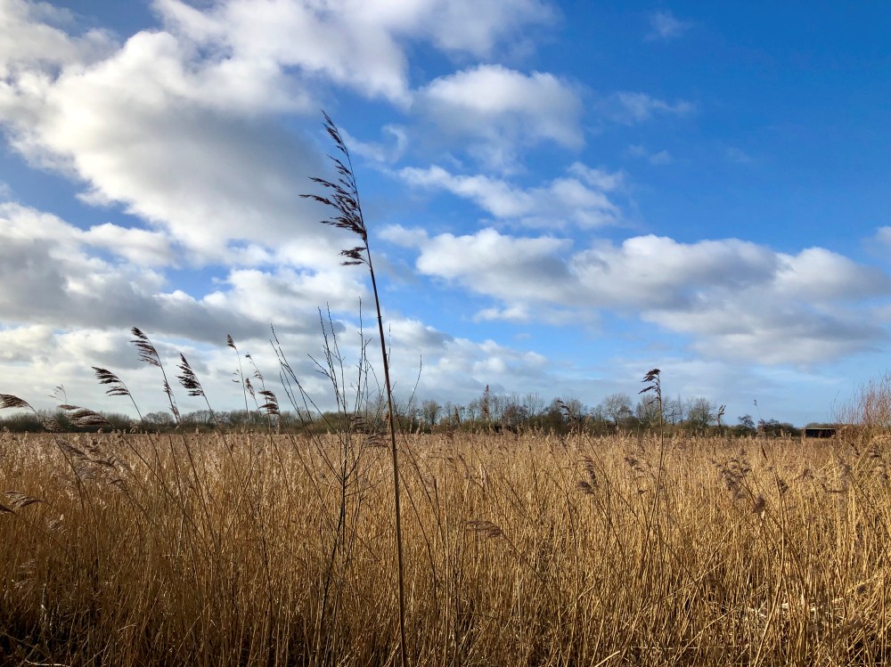 Photo of the view over the reed-bed from the east bank of No.3 bed