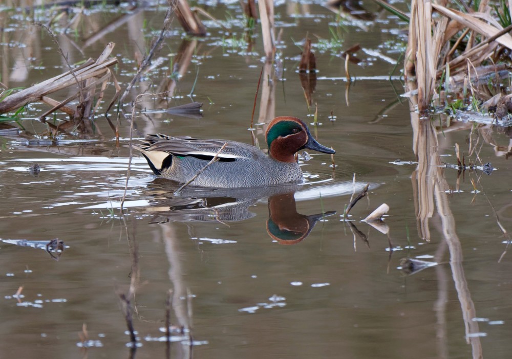 Beautiful weather today, sunny, warm and with brilliant light. Plenty of birds were in song, including Willow Tit, Cett’s Warbler, Great Tit, Blue Tit, Robin, Song Thrush, Chaffinch and Dunnock. Highlight for me was the arrival of a flock of 50 Pochard, flushed off the Ship Canal by a passing ship, which flew into No.3 bed to join 7 which were already there. Total wildfowl counts between No.3 bed and the river to the north of No.2 bed, included: 1 drake Goldeneye, 57 Pochard, 220 Tufted Duck, 200 Teal, 8 Shelduck, 20 Gadwall and 40 Mallards. The 75 Black-headed Gulls, mainly on the Weir Basin, were probably early returners to the No.3 bed breeding colony.