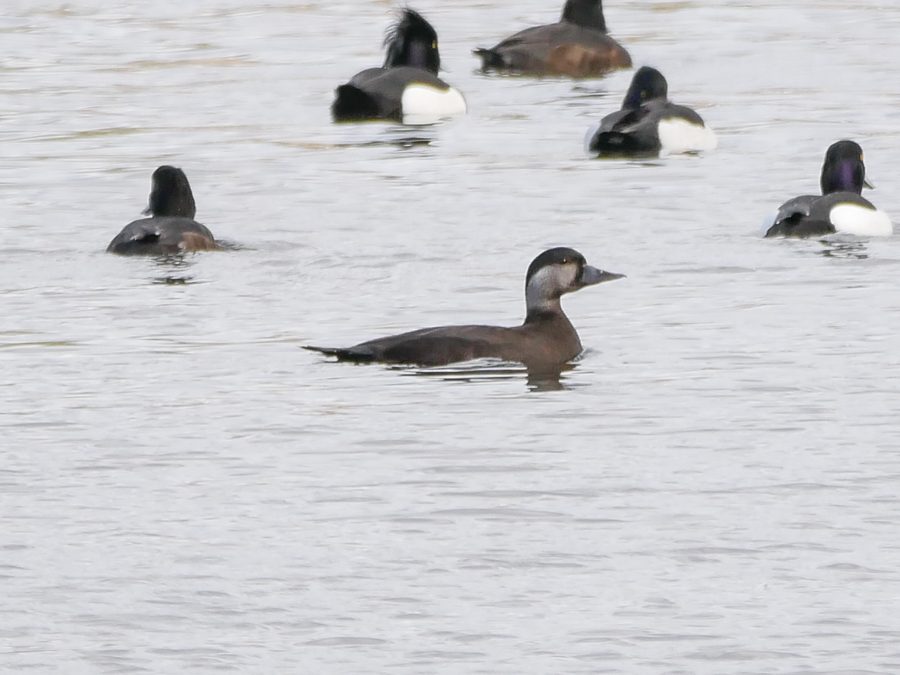Little Grebe 10, Great crested Grebe 8, Black necked Grebe 5, Cormorant 11, Mute Swan 22, Grey Heron 2, Shelduck 7, Greylag Goose 10, Canada Goose 72, Pink footed Goose 1, Gadwall 73, Teal 25, Mallard 37, Shoveler 18, Pochard 22, Tufted Duck 226, Water Rail 1, Moorhen 21, Coot 46, Lapwing 3, Black headed Gull 600, Common Gull 1, Mediterranean Gull 4, Lesser Black backed Gull 4, Great Black backed Gull 2. The Med Gulls were 2 pairs of adults.