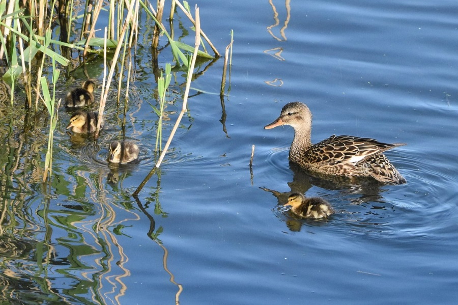 One of two Gadwall broods on the loop of No.4 this morning. Also Linnet and Goldcrest feeding young on the bed