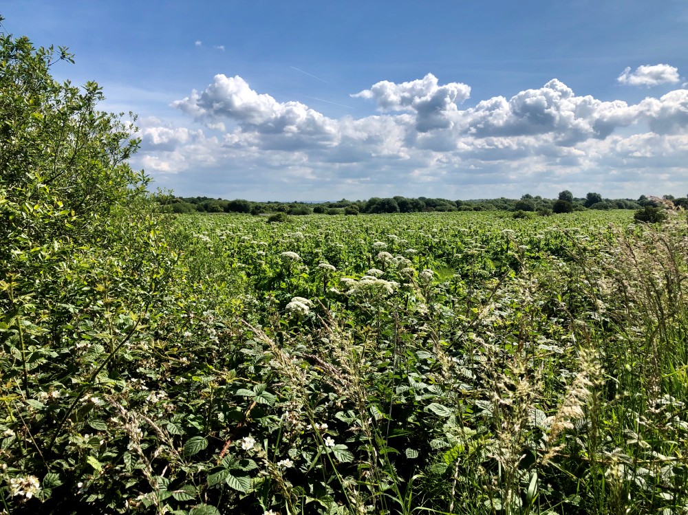 Well, summer finally arrived at Woolston Eyes today. Let’s hope it stays a while and gives all the birds with young to feed and the emerging dragonflies and butterflies a fighting chance of a good breeding season. After a 6.30 am start in the Morgan Hide, where all three species of grebe could be seen with young, some of us went on to No.4 bed to meet Jane Cullen and her colleague Diane, from the Cheshire and Wirral Badger Group, to successfully complete a Badger survey of the bed. On the way round we had some interesting sightings, including: 5 Willow Tits, 2 Cetti’s Warblers, 1 Garden Warbler, 2 broods of Pochard, 3 Black-tailed Skimmers, 1 Large Skipper, 2 Red Admirals and a stand of 13 Bee Orchids. Meanwhile back on No.3 bed, Helen Wynn and Sue Haddock were watching the Lapwing pair on the Morgan Hide scrape hatch their first chick from four eggs, while a Hobby went skimming over in search of prey. Wandering back onto No.3 bed, one more each of Black-tailed Skimmer and Large Skipper were by the centre path and the single Lapwing chick was sheltering from the sun under an attentive parent. Photo of the Giant Hogweed forest on No.4 bed. Cheers David Bowman (with David Spencer, Helen Wynn, Alan Warford, Sue Haddock, Jane Cullen and Diane)