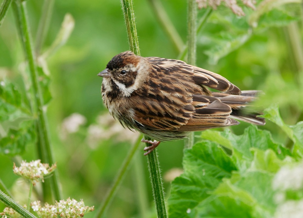 It was surprisingly humid on No.3 bed at Woolston Eyes this morning, as Dan Gornall and I trekked around the bed, assessing the Himalayan Balsam for removal by our forthcoming work parties. Seven years of hard work has seen this highly invasive alien plant cleared from large areas of the bed but the battle goes on. If anyone is keen to come along and help, work parties take place every Thursday morning at 10.00 am and the more pairs of hands the better. Contact Dan on 07906 024354, if interested. There wasn’t much time for birding but on our way round we recorded a number of Black-necked Grebes with young, and a singing Cetti’s Warbler, though Daniel Owen had the bird of the day, when a Green Sandpiper flew in. On the debit side, we watched a Lesser Black-backed Gull carry off yet another Pochard chick and came across a tiny Tufted Duck chick on its own on the path in the middle of the dense woodland on the North Bank. No sign of any female and you have to wonder how it got there - dropped by a passing Lesser Black-backed Gull, maybe? The issue of predation on the bed by these locally breeding large gulls is becoming ever more concerning as their breeding colony grows. Photo of a female Bullfinch Cheers David Bowman (with Daniel Owen and Dan Gornall)