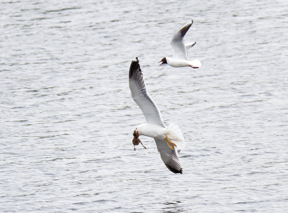 Photo of a Lesser-black-backed Gull taking a Black-headed Gull chick today.