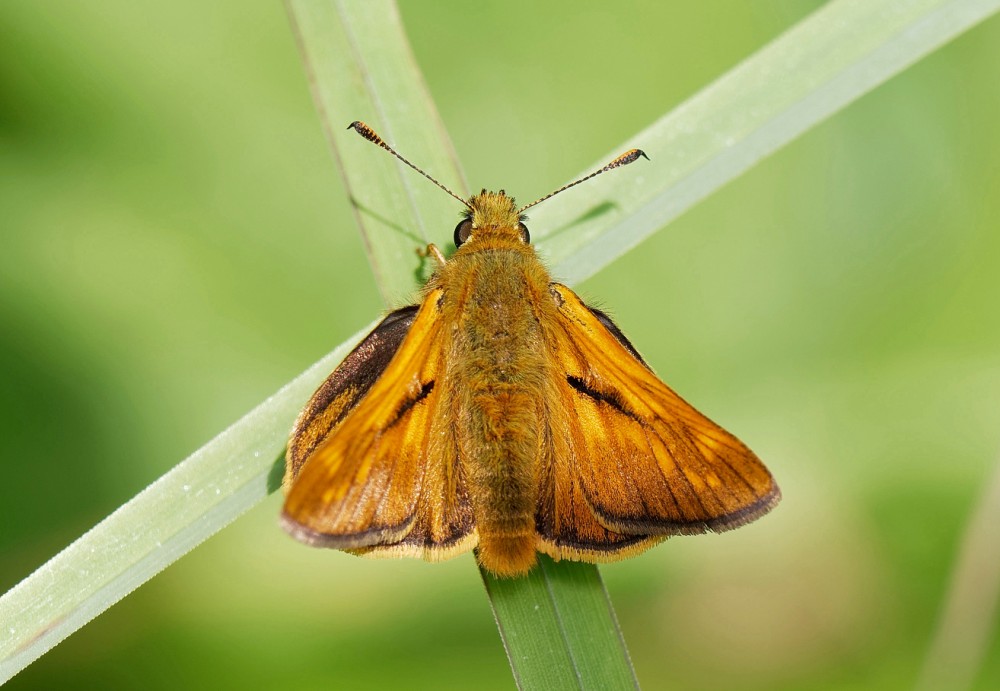 Well, summer finally arrived today. Let’s hope it stays a while and gives all the birds with young to feed and the emerging dragonflies and butterflies a fighting chance of a good breeding season. After a 6.30 am start in the Morgan Hide, where all three species of grebe could be seen with young, some of us went on to No.4 bed to meet Jane Cullen and her colleague Diane, from the Cheshire and Wirral Badger Group, to successfully complete a Badger survey of the bed. On the way round we had some interesting sightings, including: 5 Willow Tits, 2 Cetti’s Warblers, 1 Garden Warbler, 2 broods of Pochard, 3 Black-tailed Skimmers, 1 Large Skipper, 2 Red Admirals and a stand of 13 Bee Orchids. Meanwhile back on No.3 bed, Helen Wynn and Sue Haddock were watching the Lapwing pair on the Morgan Hide scrape hatch their first chick from four eggs, while a Hobby went skimming over in search of prey. Wandering back onto No.3 bed, one more each of Black-tailed Skimmer and Large Skipper were by the centre path and the single Lapwing chick was sheltering from the sun under an attentive parent. Photo of a Large Skipper from NO.4 bed Cheers David Bowman (with David Spencer, Helen Wynn, Alan Warford, Sue Haddock, Jane Cullen and Diane)