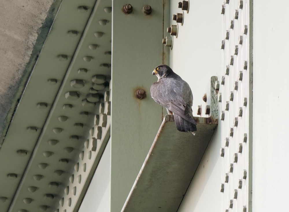 On a sultry Saturday morning we made a 6.30 am start to check out progress with some of our scarcer breeding birds. During the week on No.3 bed three new broods of Tufted Duck were joined by one of Pochard, with still time for more to come. At the eastern end of the Reserve the two Peregrine young are now mobile and making short flights under the steely gaze of the parents. While there was no sign of the two pairs of Oystercatcher we were hoping ,would breed, two pairs of Little Ringed Plover and four of Lapwing have been successful. While its been a poor season so far for some of our butterflies and dragonflies, the blazing sun produced a good variety of both, though only in small numbers. Among the dragonflies, we saw our first Common Darter of the year, along with two Brown Hawkers, while the butterflies included: 3 Painted Ladies, the first Gatekeeper and Small Copper, 5 Red Admirals, 1 Common Blue, 1 Large Skipper, 8 Meadow Browns, 1 Speckled Wood, 4 Small Tortoiseshells, 1 Peacock, 2 Commas and a couple of unidentified Whites. Photo of the adult female Peregrine Cheers David Bowman (with David Spencer, Helen Wynn, Alan Warford, Sue Haddock and Dave Steel)