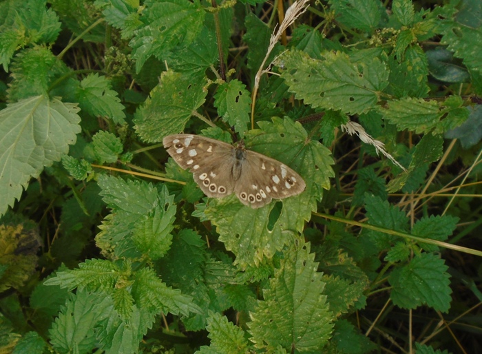 A very pleasant day for my walk round the reserve. One of the resident Peregrines was on the viaduct whilst about 120 Canada Geese flew west along the canal. Perhaps less welcome were the large numbers of Lesser Black-backed Gulls at the river basin and on No.3 bed. I counted 31 adults and no less than 183 juveniles. Flocks of post-breeding Goldfinch are appearing with a total of 60 on No.4 bed. The large numbers of Peacock and Painted Lady butterflies seemed to have peaked and reserve totals of 59 and 41 respectively were well down on last week, although in the case of the latter species still exceptional. An interesting sighting was of a female Brimstone on the south bank of No.3 bed. Photo; Speckled Wood