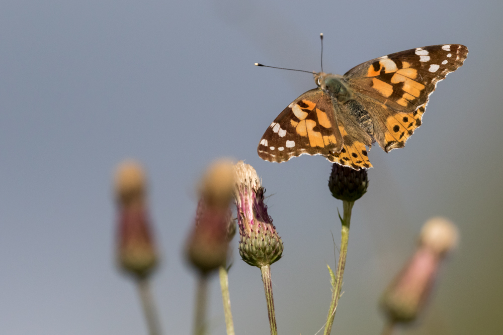 The huge national influx of Painted Lady butterflies was reflected in the exceptional numbers present at Woolston in the past few days. A series of visits since 1st August covering the whole reserve produced a record total of 193; this is by far the largest count for many years, the previous highest being 46 in 2009. Other counts of interest were 335 Peacock, 192 Gatekeeper, 114 Meadow Brown, and 60 Speckled Wood. Whites were plentiful and 114 included about 75 Green-veined and 30 plus Small. “3 Common Blue were found and 2 Holly Blue whilst 3 Small Copper were encouraging. Photo; Common Blue