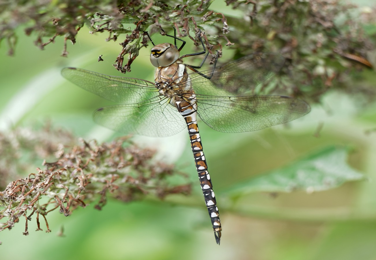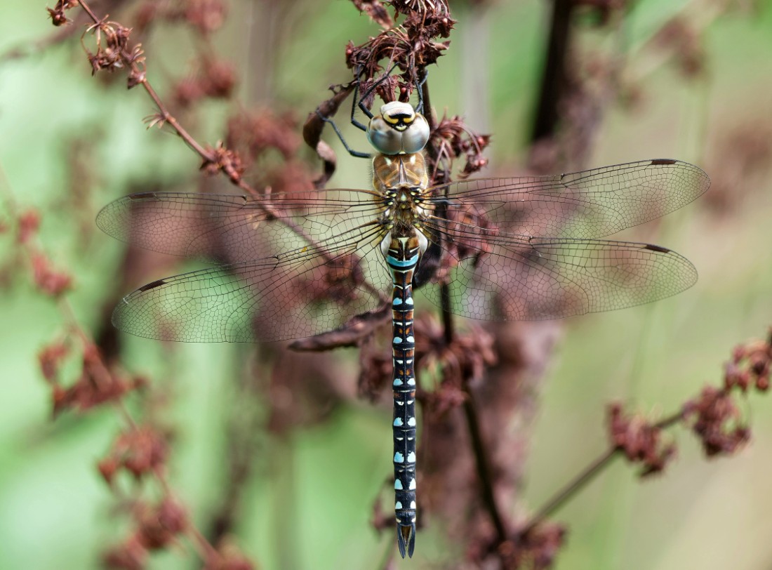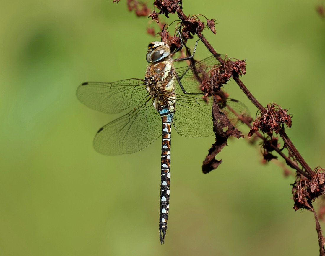 After doing some bird counts around No.3 bed (with highlights of three Kingfishers, one Green Sandpiper, four Black-tailed Godwits and a Garden Warbler) it was nice to just wander round taking in the flowers, butterflies, dragonflies and myriad of insects in the sunshine. Counts included: 34 Painted Ladies, 3 Migrant Hawkers,2 Southern Hawkers, 7 Red-eyed Damselflies, 4 Ruddy Darters and 10 Brown Hawkers. With autumn not far away, the Reserve is now a veritable larder of ripening fruits and berries. We seem to have a good crop of elderberries, blackberries and haws (the fruit of the Hawthorn) this year. The first two are the primary foods of migrating Blackcaps and other Sylvia warblers in autumn and the Reserve will see many hundreds feeding, particularly throughout September. The haws will in turn sustain the large flocks, sometimes numbering in the thousands, of Redwings and Fieldfares which arrive from Scandinavia from October onwards. Photo of a Brown Hawker Cheers David Bowman