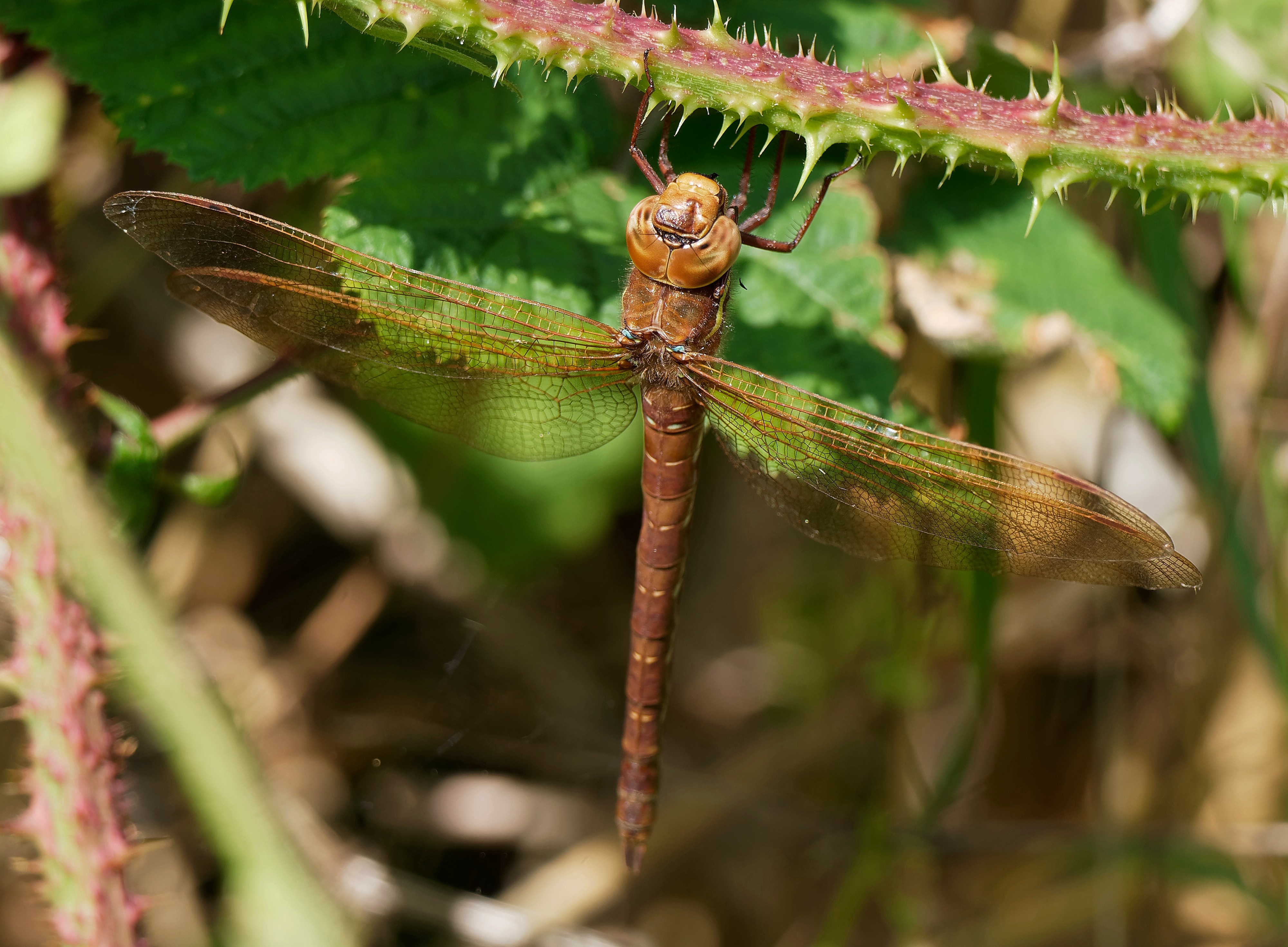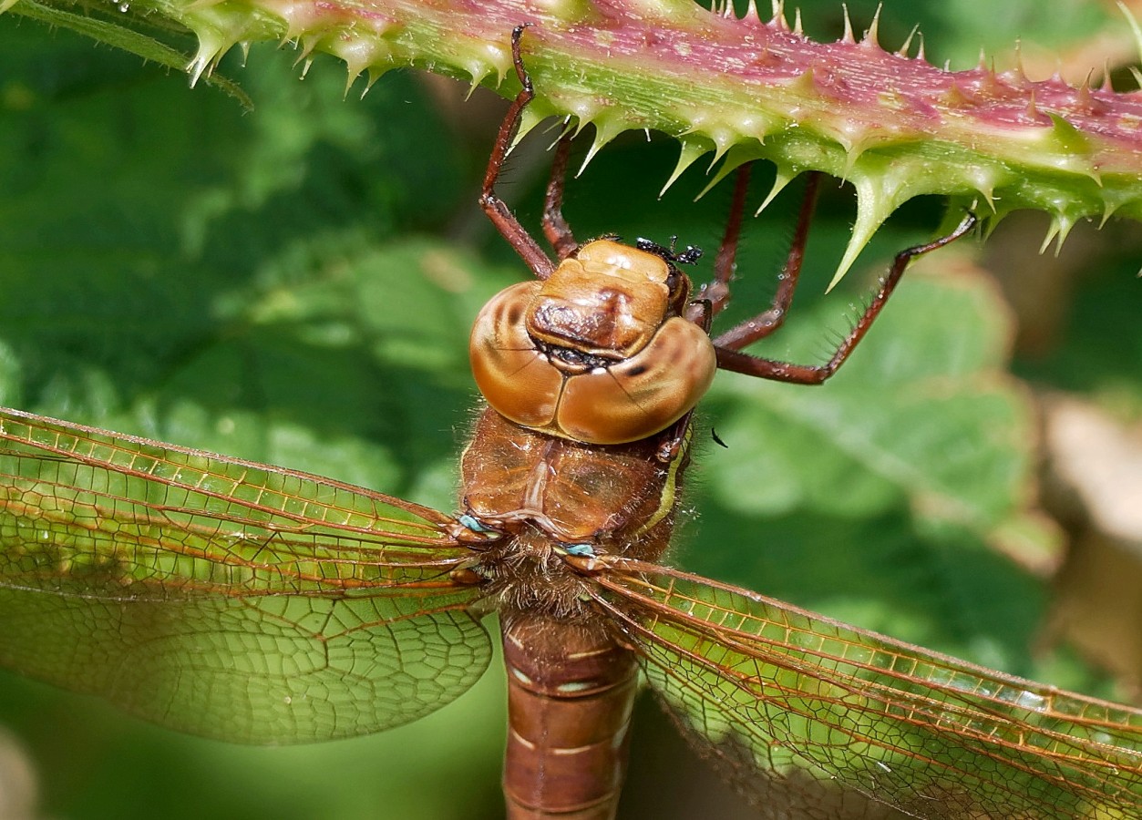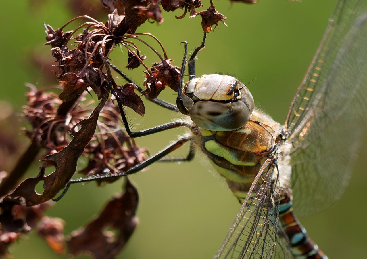 After doing some bird counts around No.3 bed (with highlights of three Kingfishers, one Green Sandpiper, four Black-tailed Godwits and a Garden Warbler) it was nice to just wander round taking in the flowers, butterflies, dragonflies and myriad of insects in the sunshine. Counts included: 34 Painted Ladies, 3 Migrant Hawkers,2 Southern Hawkers, 7 Red-eyed Damselflies, 4 Ruddy Darters and 10 Brown Hawkers. With autumn not far away, the Reserve is now a veritable larder of ripening fruits and berries. We seem to have a good crop of elderberries, blackberries and haws (the fruit of the Hawthorn) this year. The first two are the primary foods of migrating Blackcaps and other Sylvia warblers in autumn and the Reserve will see many hundreds feeding, particularly throughout September. The haws will in turn sustain the large flocks, sometimes numbering in the thousands, of Redwings and Fieldfares which arrive from Scandinavia from October onwards. Photo of a Brown Hawker Cheers David Bowman