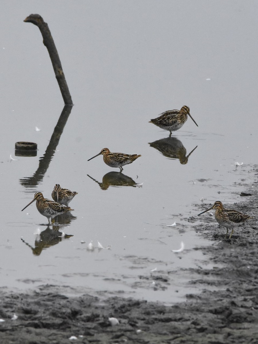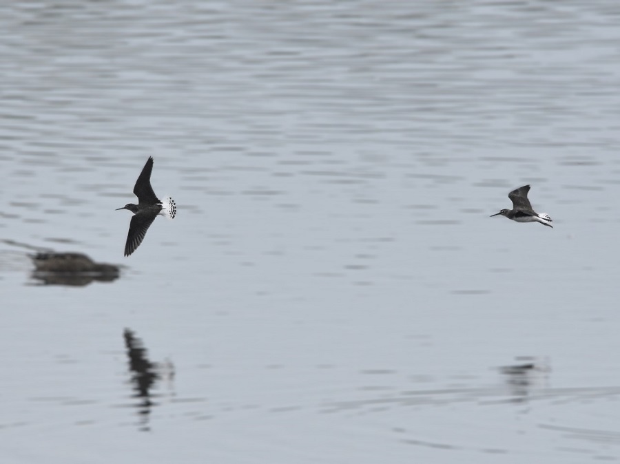 2 of at least 7 Green Sandpipers on No3 Bed this morning. A minimum of 2 were already present when 5 dropped out of the sky and landed on the bed