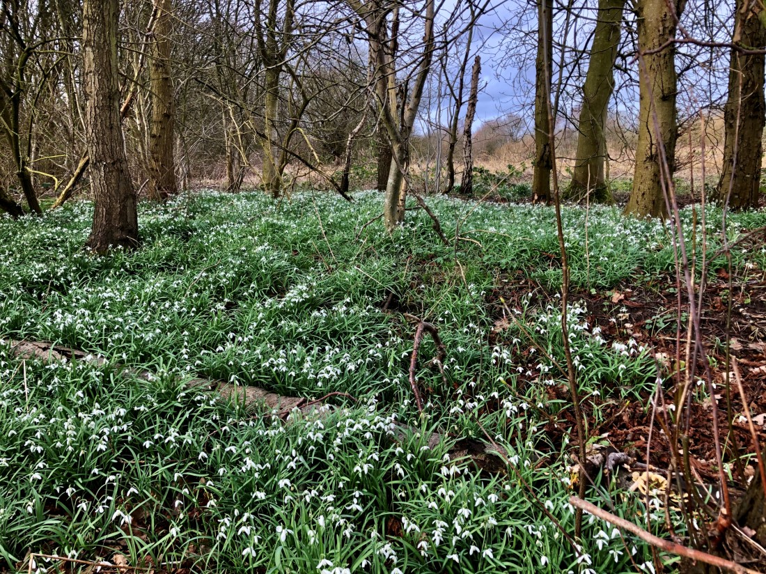 It always feels like spring is just around the corner when you walk on to No.3 bed on a sunny day, to the raucous sound of the first returning Black-headed Gulls. Just over 100 were present this morning, squabbling and indulging in pre-breeding behaviour, which usually involves flying around with bits of vegetation before displaying on the Morgan Hide scrape. They’ll come and go over the coming weeks, as the weather changes, before the real build up starts in March, reaching over 1,000 by late April/early May. The wildfowl, too, were responding to the approach of spring, with Teal, Shoveler, Gadwall, Shelduck and Mallard already pairing up. Otherwise, notable sightings included the long-staying Marsh Harrier, 2 Ravens, 56 Pochard, 230 Tufted Duck, 2 Water Rails, 2 Cetti’s Warblers and a Kingfisher. Photo of the Snowdrops in the Shelter Belt