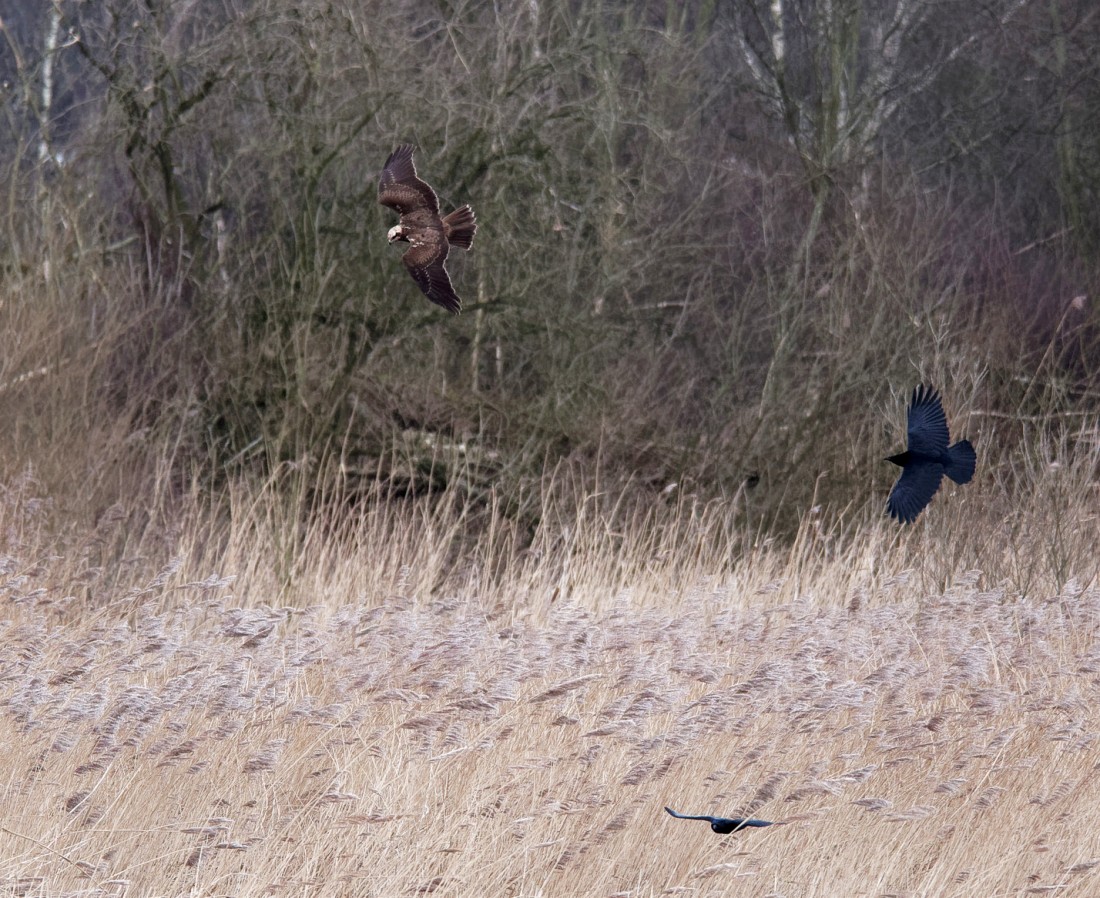 A combination of sunshine, a biting wind and occasional horizontal hail showers made for an interesting morning. Danny Gornall and I started in the Morgan Hide, where a Marsh Harrier and 26 Pochard were the pick of the birds. We then met with Robin Horner, from the RSPB and our contractor, Steve Fletcher to finalise the siting of 4 x 2,500 square metre breeding islands on the planned No.4 bed wetland. On the cleared area a few Herring and Lesser Black-backed Gulls were among the 150 Black-headed Gulls, while a pair of Willow Tits and a dozen Redwings were in the nearby trees. Then it was back to No.3 bed for lunch, where two Marsh Harriers pushed 500 wildfowl out of cover in the reeds and a Kingfisher was perched. Interestingly, neither of the harriers was the brightly marked adult female we’ve been seeing recently, so at least three individuals have been visiting us over the past month or so. Record shot of one of the Marsh Harriers Cheers David Bowman
