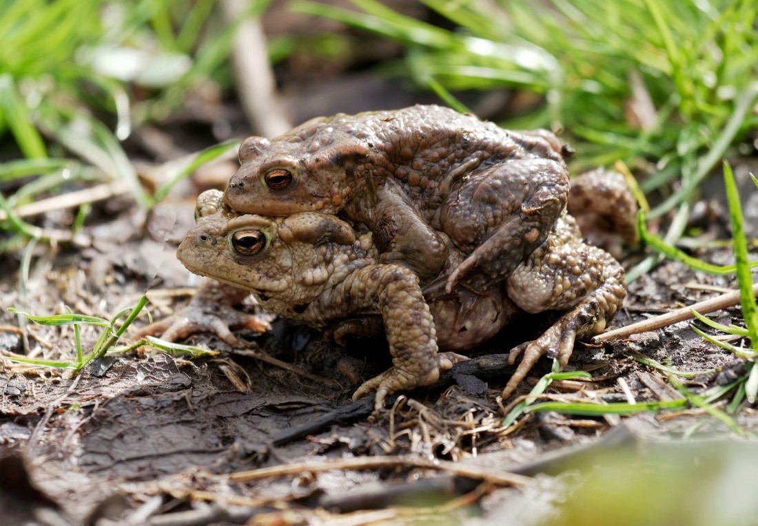 Another brilliant spring morning on No.3 bed, with hazy sunshine and a light NNW breeze. An early start in the Morgan Hide produced the pleasing sight of nine Black-necked Grebes interacting and displaying after an overnight arrival. A male Stonechat from the Linley Hide, plus four Oystercatchers, a Goosander, 7 Meadow Pipits, 2 Lesser Redpolls and a Sand Martin were other signs of passage. We then completed a breeding bird survey of the bed, with counts including: 10 Cetti’s Warblers, 9 Chiffchaffs, 1 Willow Tit, 27 Wrens, 22 Robins, 14 Dunnocks, 16 Great Tits, 16 Blackbirds, 3 Song Thrushes and 10 Reed Buntings. Other odds and ends included 2 Kingfishers, a marauding Peregrine, Water Rail, Snipe, Buzzards, Kestrels, Sparrowhawks, 17 Pochard, 400 Black-headed Gulls and mating Common Toads (see photo) Cheers David Bowman (with David Spencer, Dave Steel, Brian Martin, Daniel Owen and Danny Gornall)