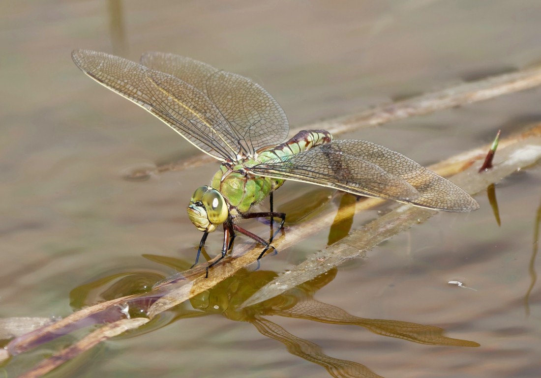 It was one of those hot, still days awith little visible passage but excellent conditions for dragonfly surveying. In the light of this, we made an early start on No.3 bed before walking down to No.1 bed to survey the network of 21 pools there. Most of these have been created over the past couple of years and are now starting to mature, as evidenced by our recent dragonfly counts. As far as waders on No.3 bed were concerned, the 3 Green Sandpipers, 5 Black-tailed Godwits and a Common Snipe were typical of the past week or so. Walking down to No.1 bed it was pleasing to find a small stand of seven Broad-leaved Helleborines. This very understated orchid is uncommon in Cheshire and the Reserve holds an important population of well over 100 plants. The resident Peregrine pair were then perched by the Viaduct nest site and we later saw a juvenile male on the hunt. While not reaching the levels of the last survey of the pools, we still managed to find 7 Emperor Dragonflies, 1 Black-tailed Skimmer, 5 Blue-tailed Damselflies and 140 Common Darters. Finally, a couple of Little Ringed Plovers were nice to see, along with further evidence, via footprints, of the continued spread of Roe Deer on the Reserve. Photo of an Emperor Dragonfly Cheers David (with David Spencer, Alan Warford, Brian Martin, Sue Haddock and Colin Hamlet)