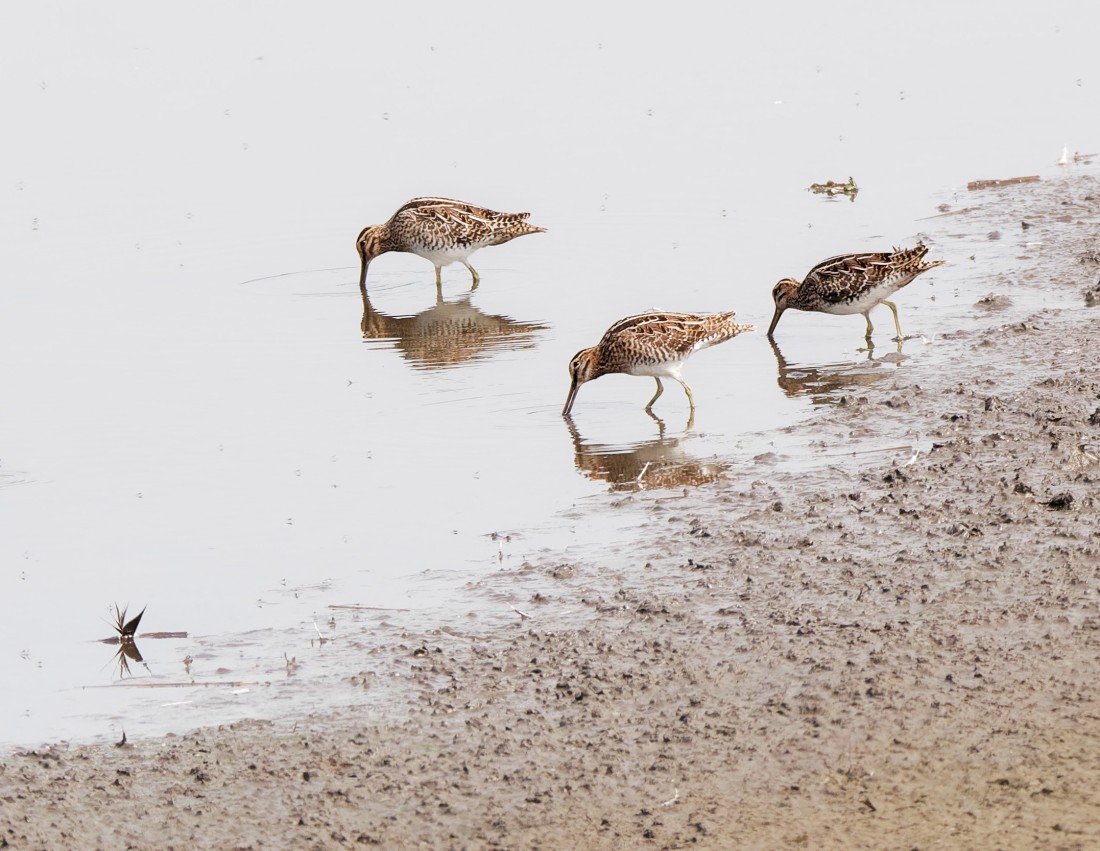 I split my morning between scanning for waders from the Morgan Hide and walking on to No.4 bed to help our contractor with some technical issues with the first sluice for the new wetland. Birds along the way included: 2 Common Sandpipers, 6 Green Sandpipers, 5 Black-tailed Godwits, 5 Snipe, 2 Kingfishers and 4 Cetti’s Warblers. While I was on No.4 bed, David Spencer found a Red-legged Partridge on No.3, which, if my memory serves me right, is a first for that bed. Photo of some of the Snipe Cheers David