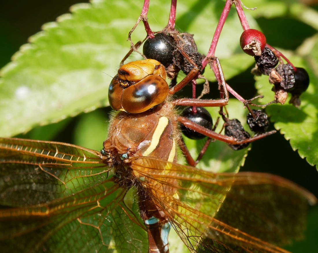 Another steaming hot morning, starting on No.3 bed before walking over to check out the Loop of No.4 bed. As is often the case on still, hot days, not much was moving. The only evidence of migration came from six Dunlin which flew around No.3 bed before heading south and from a couple of dozen Swallows which passed over. Other waders included five Green Sandpipers, two Common Sandpipers, four Snipe and four Black-tailed Godwits. Otherwise, it was a day for enjoying the large numbers of butterflies and sprinkling of dragonflies which were such a feature of warm days on the Reserve. Photo of a Brown Hawker Cheers David (with Alan Warford)