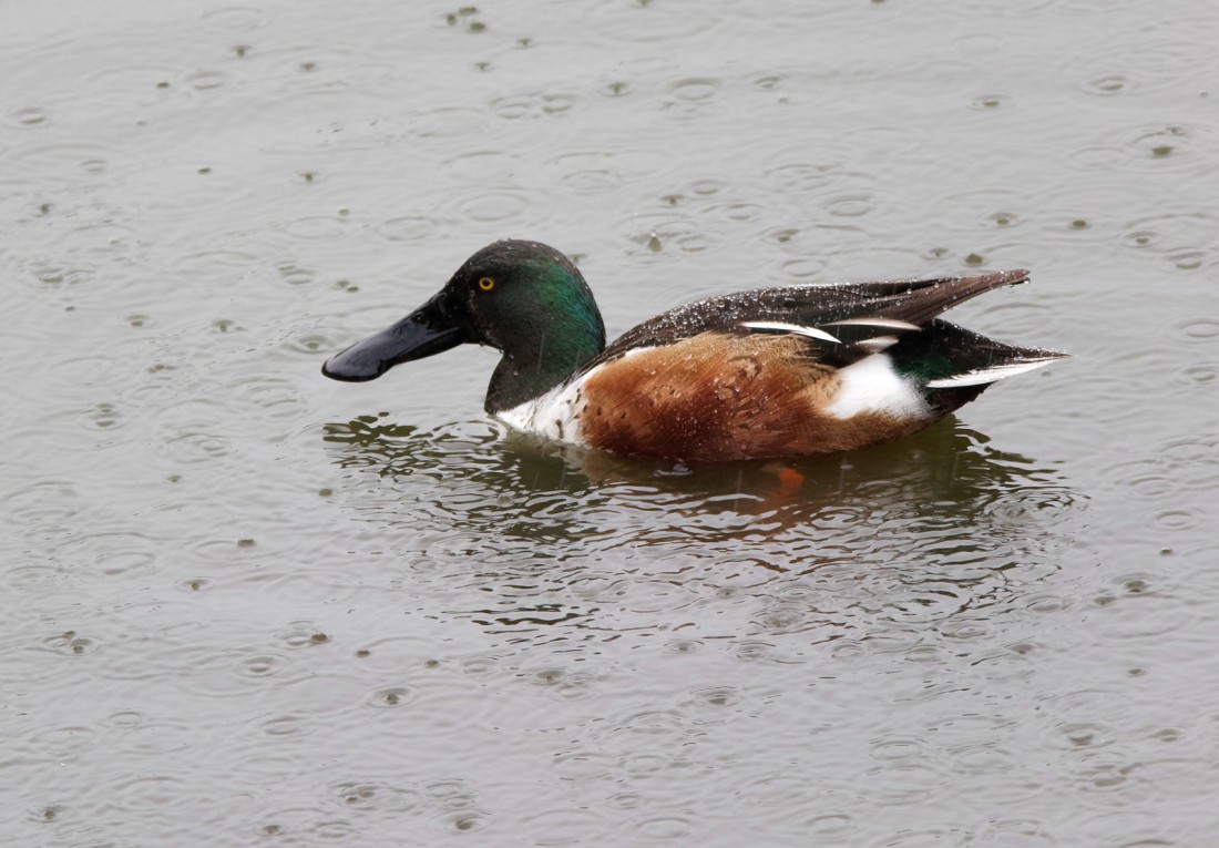 With the prospect of persistent rain this morning at Woolston Eyes, I started with a dawn walk onto No.4 bed to check on progress with the wetland development. Despite the very wet October the work on No.4 bed is progressing steadily and the part which has been completed is holding plenty of water. Birds have been quick to take advantage of this and included: 1 Green Sandpiper, 5 Common Snipe, 4 Wigeon, 220 Canada Geese and smaller numbers of Teal, Mallard, Gadwall and Shoveler. On the seed-rich islands and bunds seed-eaters included: 75 Linnets, 40 Goldfinches, 20 Chaffinches plus a few Skylarks and Meadow Pipits. Later from the Morgan Hide 175 Teal, 2 Wigeon, 2 Water Rails, 14 Moorhens and 1 Kingfisher were noted. Photo of a Shoveler Cheers David Bowman
