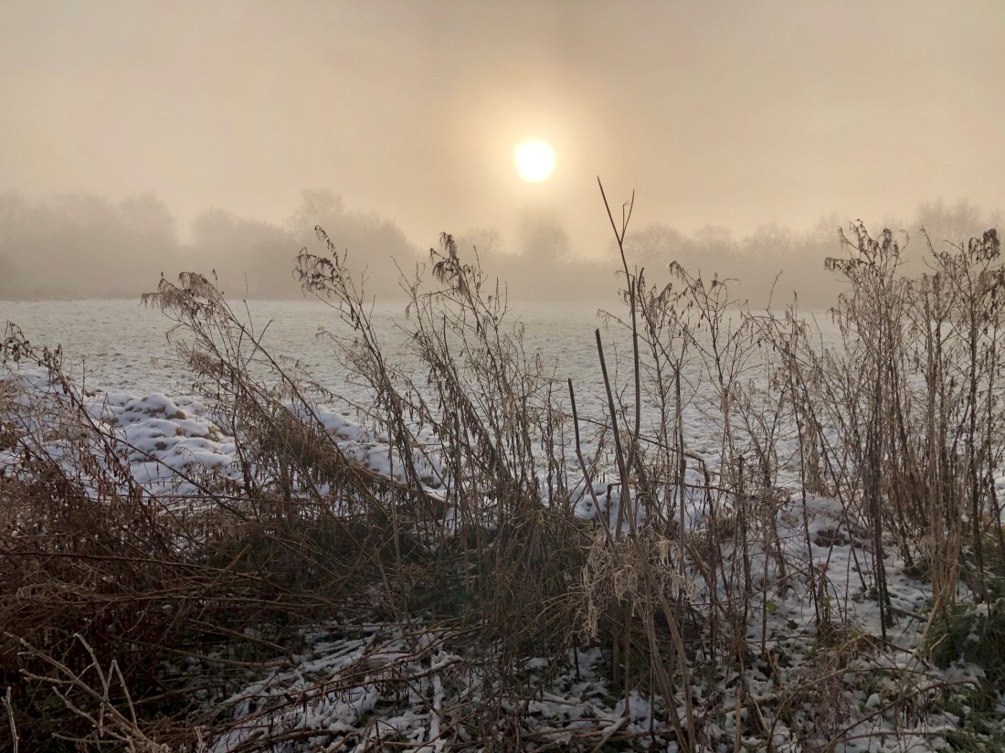 The combination of a hard overnight frost and heavy ground mist produced some really atmospheric conditions, early this morning. With the No.3 bed lagoon frozen solid and limited visibility, the early focus was on the Morgan Hide feeding station, with four Bramblings, seven Lesser Redpolls and a Water Rail the pick of the bunch. Then it was a wander onto No.4 bed, for a progress meeting with the contractor who is building our amazing new wetland. Despite the conditions, 200 wildfowl were working hard to keep a small pool open, with 100 Teal and 40 Coot doing most of the work, along with smaller numbers of Gadwall, Shoveler, Mallard and Mute Swans. Then a skein of 200 Pink-footed Geese dropped down, to take a brief look at the wetland before carrying on to the west and, finally, a flock of 120 Fieldfares and a few Redwings filtered through the remaining areas of scrub. Photo of a misty sunrise on No.3 bed Cheers David