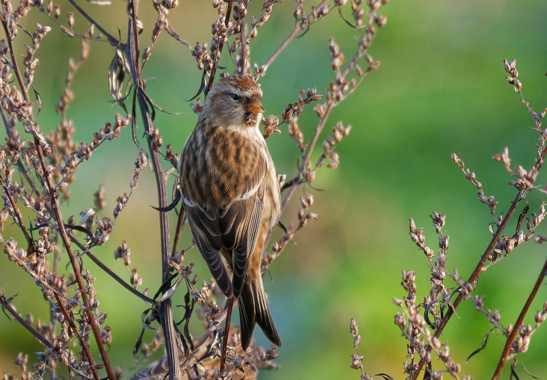 A beautiful morning on No.3 bed, with: 3 Woodcocks, a female Marsh Harrier, 1,500 Woodpigeons flying north in an hour, a calling flock of 220 Pink-footed Geese flying eastwards and more than 300 “seed-eaters”, including: 3 Lesser Redpolls, 8 Linnets, 15 Reed Buntings, 30 Goldfinches, 140 Greenfinches and 120 Chaffinches, with at least three Sparrowhawks drawn in by the wealth of available prey. Photo of a Lesser Redpoll Cheers David Bowman