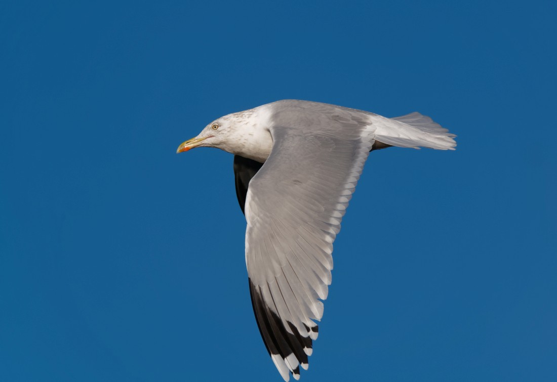 With the lagoon on No.3 bed frozen solid wildfowl were mainly concentrated on the deeper water areas of the Oxbow, Ship Canal, Mersey and Weir Basin. Best sighting was undoubtedly David Spencer’s, of at least 10 Mandarins at Bollin Point, of which six were males. The feeding stations were all jumping with birds, with many more feeding in the leaf litter around the bed. Highlights were: a small influx of 30 Lesser Redpolls, three of which were using the feeders at the Sybil Hogg Hide, 4 Bramblings, 60 Redwings, 25 Fieldfares and 11 Linnets. A count at Latchford Locks included: 1 Common Gull, 3 Herring Gulls, 4 Lesser Black-backed Gulls, 120 Black-headed Gulls, 75 Mallards, 2 Cormorants (which were displaying to each other) and a couple of Mute Swans. Photo of a Herring Gull Cheers David