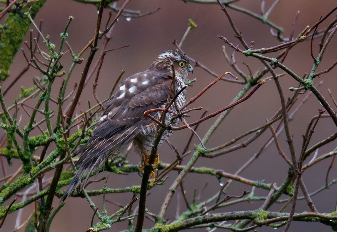 Record shot of a beautifully marked juvenile male Sparrowhawk which perched above the Morgan Hide feeders today. Cheers David