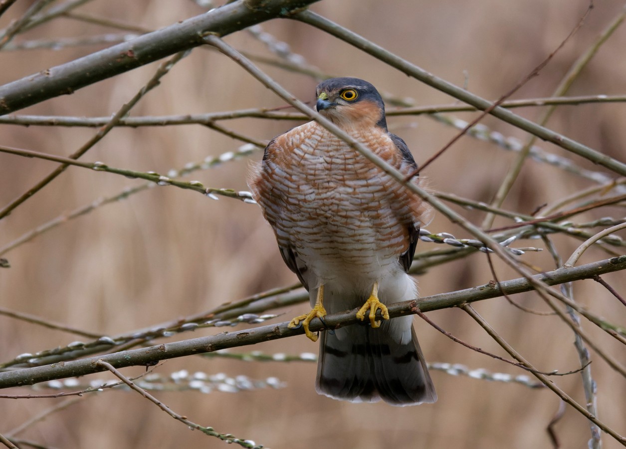 I was a bit later than usual getting out this morning and so missed the sight of at least 10,000 Starlings leaving their roost on No.3 bed (as reported by Dan Owen). As a murmuration of around 8,000 Starlings was also reported from the Loop of No.4 bed last night, it may be that we have at least two roosts currently on the Reserve (it’s possible that the birds over the Loop were a pre-roost gathering of birds which ended up on No.3 bed but this needs checking out.) As ever, roosts attract birds of prey and sightings from No.3 bed in the last couple of days have included Merlin, Barn Owl, Marsh Harrier, Sparrowhawks and Kestrels. If the roost continues to build then I would expect to see the local Peregrines and Tawny Owls arriving to share in the evening feeding bonanza. A good vantage point for watching the evening murmuration is the from the path along the west bank of No.2 bed. Any sightings/photos either from there or from the viewpoint from Paddington Meadows, for the possible roost on No.4 bed, will be gratefully received. Photo of an adult male Sparrowhawk Cheers David