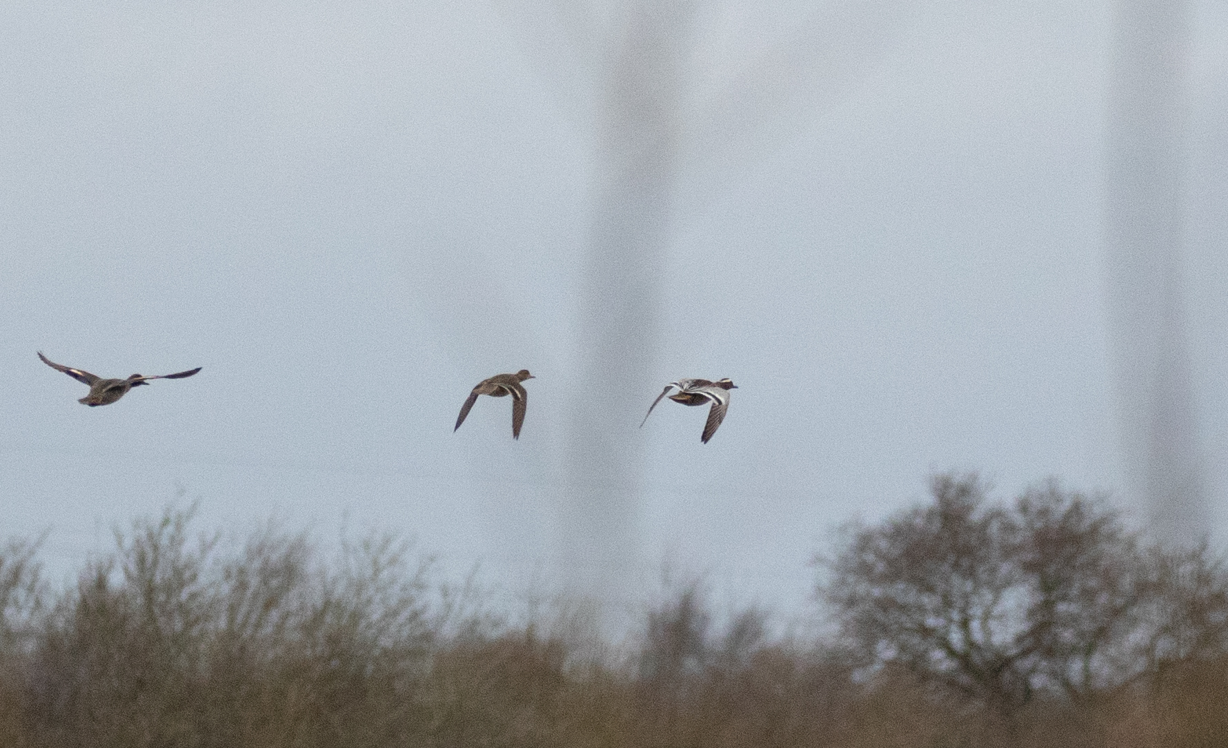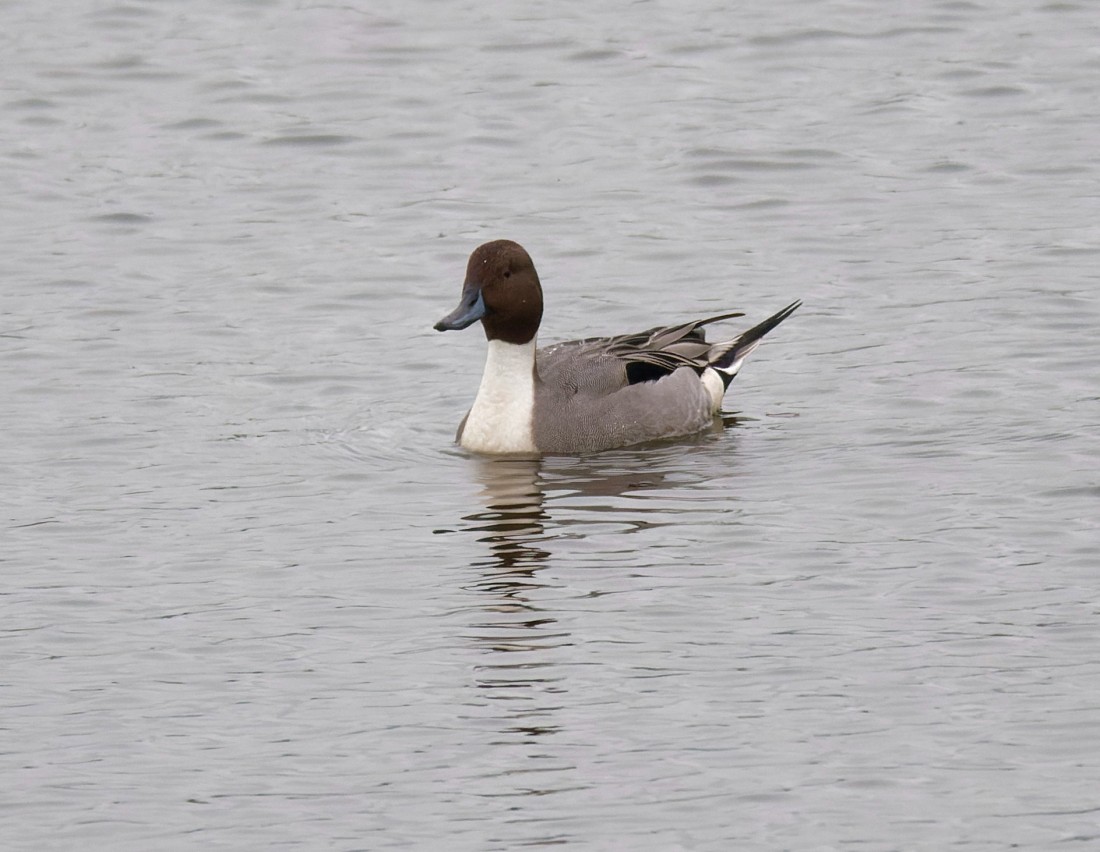 It was blustery with driving rain at dawn at Woolston Eyes, though the weather front soon moved through, bringing blue skies from the west. The sight and sound of 150 Black-headed Gulls milling around at the breeding colony were a hint that spring might not be too far away. The long-staying Marsh Harrier then flushed 6,000 Starlings from their over-night roost, while three Sparrowhawks skimmed through, trying to snatch an easy breakfast. The presence of the harrier unsettled the 60 Pochard and 120 Tufted Ducks out on the water and while they were circling the bed they were accompanied by a drake Pintail and a drake Goldeneye, with the former dropping back in, while the Goldeneye headed for the Weir Basin. Once a common wintering species on the Reserve, Pintails are now pretty uncommon, so it was nice to have good views of this most elegant of our wildfowl. Record shot of the Pintail Cheers David