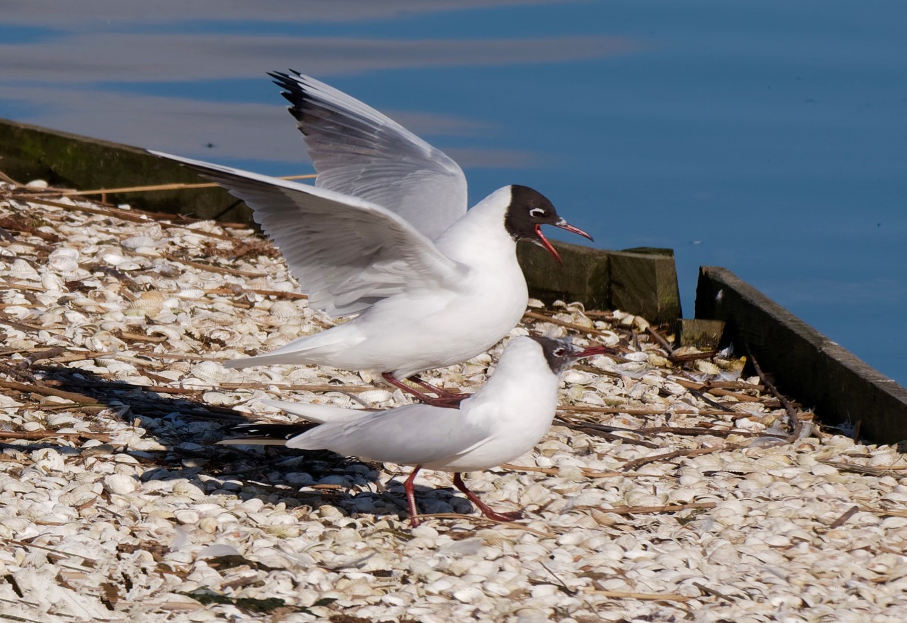 Despite the ideal conditions, of blue skies and a light south-easterly breeze, there was no sign of any movement, so the focus was on enjoying the incessant pre-breeding activity, particularly of the 500 or so Black-headed Gulls, some of which were encouraged into early mating by the warmth of the day. A Mediterranean Gull which left the bed and flew across the Ship Canal was probably the same one which has been present for a few days. The male Peregrine which stirred up the gulls was, more than likely, from our resident breeding pair. Finally, a Brambling, was ringed by Kieran Foster’s ringing team and hopefully, we’ll see plenty more of in the coming weeks,, as March is peak passage time for them, as they start heading back to their Scandinavian breeding grounds. Photo of mating Black-headed Gulls Cheers David Bowman (with Helen Wynn)