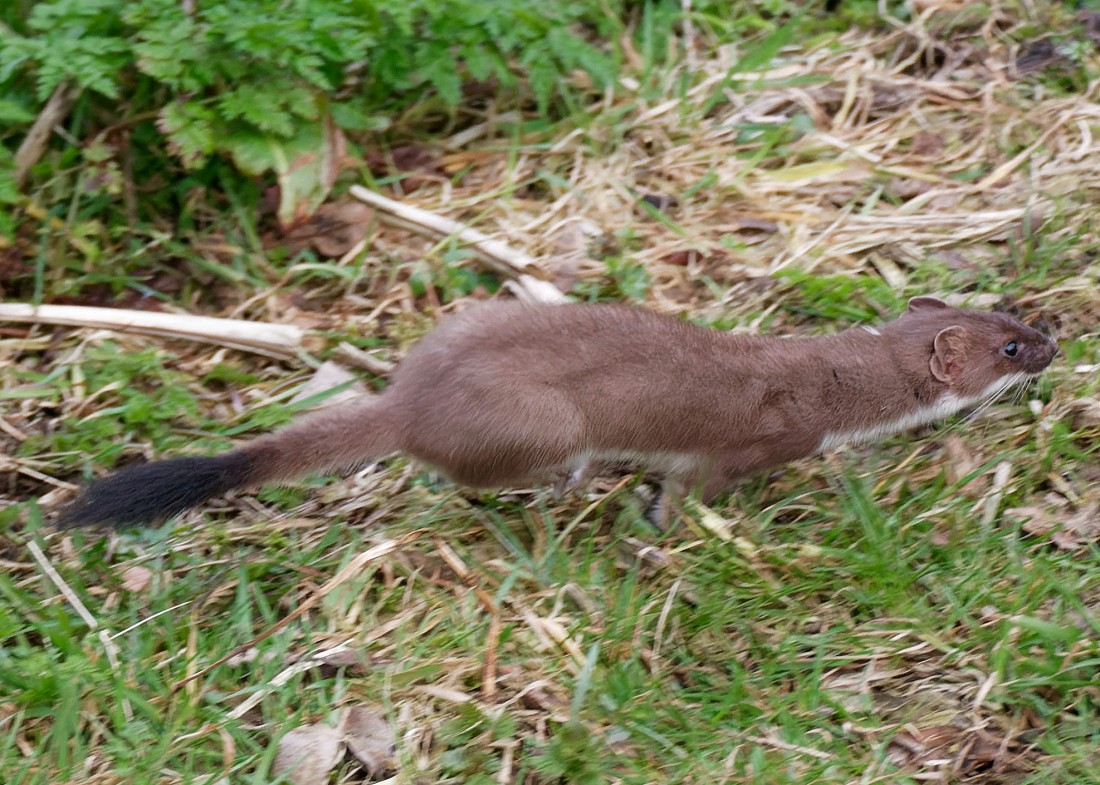 With the winds swinging from southerlies to northerlies overnight, I wasn’t expecting much in the way of migration this morning, but birds have a way of surprising you. Two Black-necked Grebes were in front of the Morgan Hide and later treated us to their “penguin display”, where they run across the water in an upright pose, in unison. They were joined by a single bird, not yet in full breeding plumage and with a noticeably white breast (black in breeding plumage). These were our second earliest ever returning Black-necked Grebes, following our earliest ever Little Ringed Plover yesterday. The very unusual sight of Black-headed Gulls mobbing around the left-hand feeders made me think that a ground predator, maybe Fox, Mink or Badger, was present. I was delighted, however to see a Stoat hunting actively, closely followed by a variety of small birds giving vigorous alarm calls. A couple of hours more scanning produced a single Sand Martin, flying low to the west. My earliest ever, I think. Finally, single drakes of Pintail and Wigeon dropped in and the female Scaup, which has been around for a while, was on the Ship Canal near the car park. Photo of the Stoat Cheers David Bowman