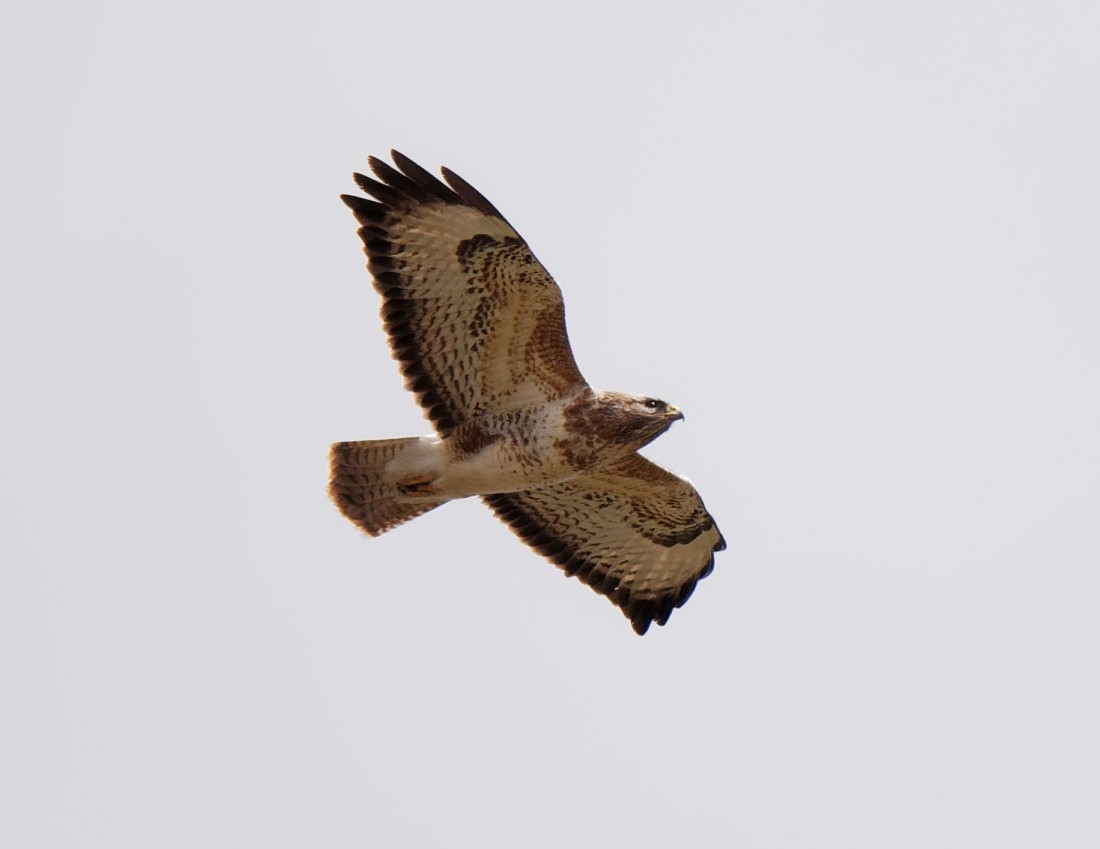 The 11 Black-necked Grebes from Tuesday had reduced to 7, which is typical as they tend to go wandering round adjacent waters before finally returning to breed. A single Redshank then dropped onto No.3 bed, a skein of 85 Pink-footed Geese headed north-west and just one Sand Martin passed through, compared with the 420 from Tuesday. On No.4 bed, a pair of Pintail were looking settled, 6 pairs of Lapwings were displaying and two Ringed Plovers called in briefly before being disturbed by a hunting Peregrine. Other sightings of note around the wetland included: 14 Chiffchaffs, 7 Lesser Redpolls, 60 Linnets and 5 Meadow Pipits. In addition, a few butterflies were on the wing as the day warmed: 1 Brimstone, 5 Peacocks and 2 Small Tortoiseshells. Photo of a Common Buzzard Cheers David Bowman (with Dave Steel)