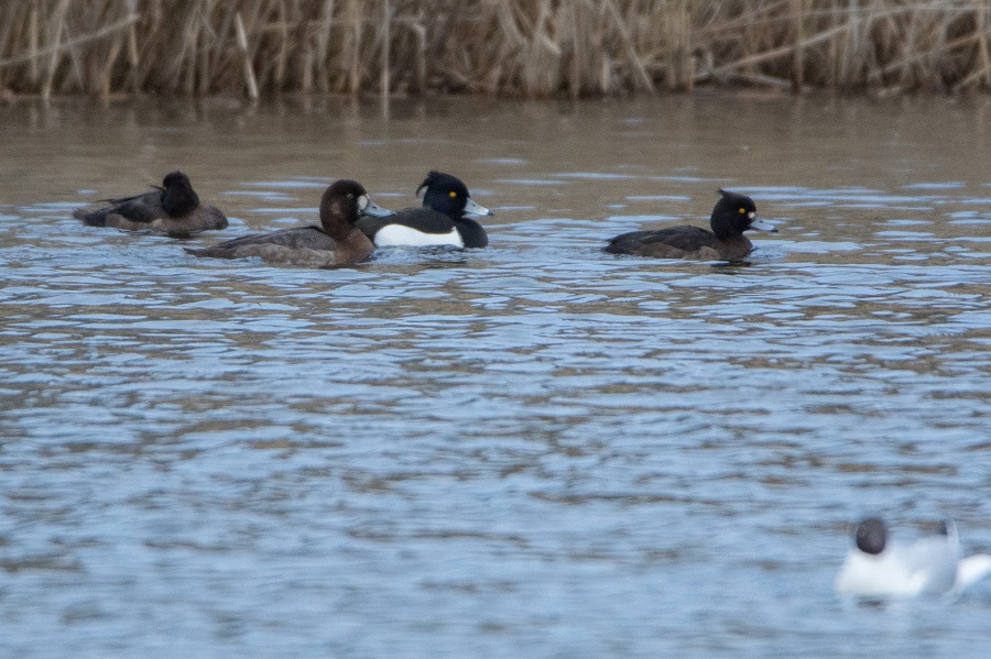 The 1st-winter female Scaup again visited No3 Bed with a small group of Tufted Duck