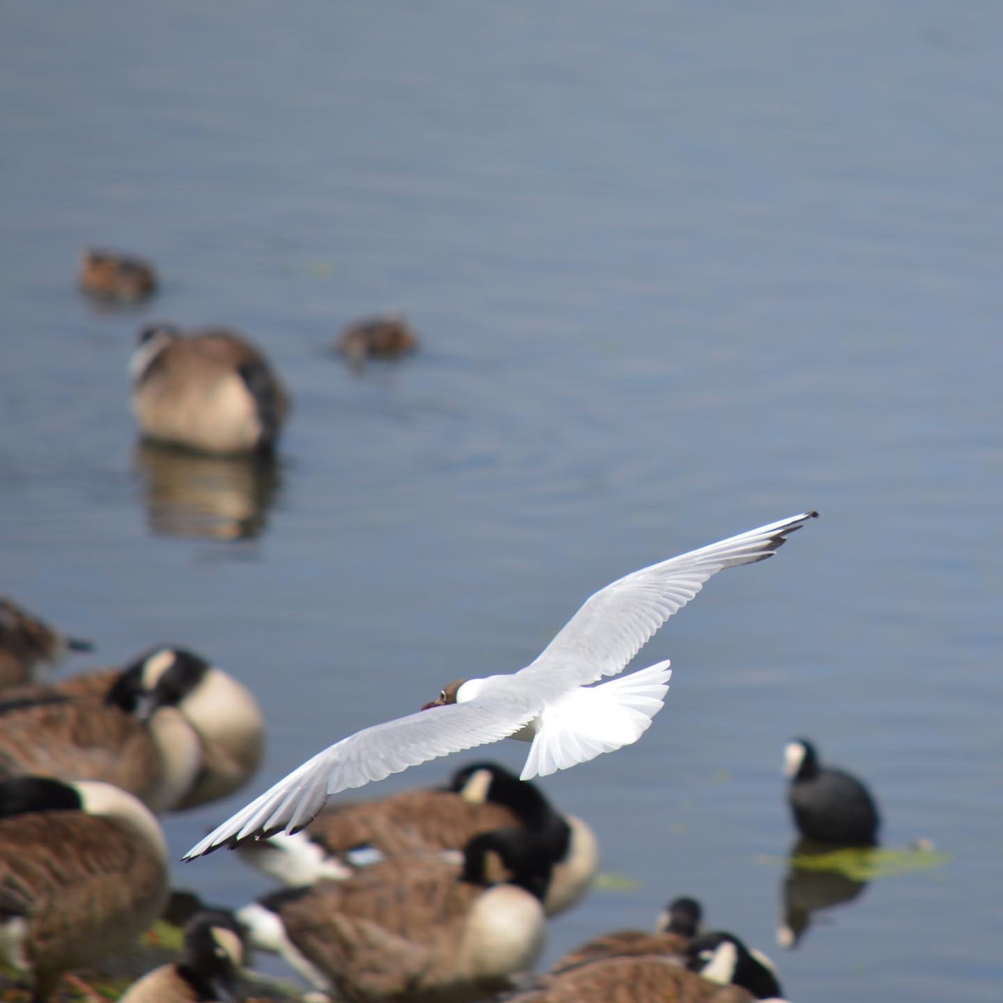 Black-headed gull coming to land. Photo by Ella taken from the Morgan hide.