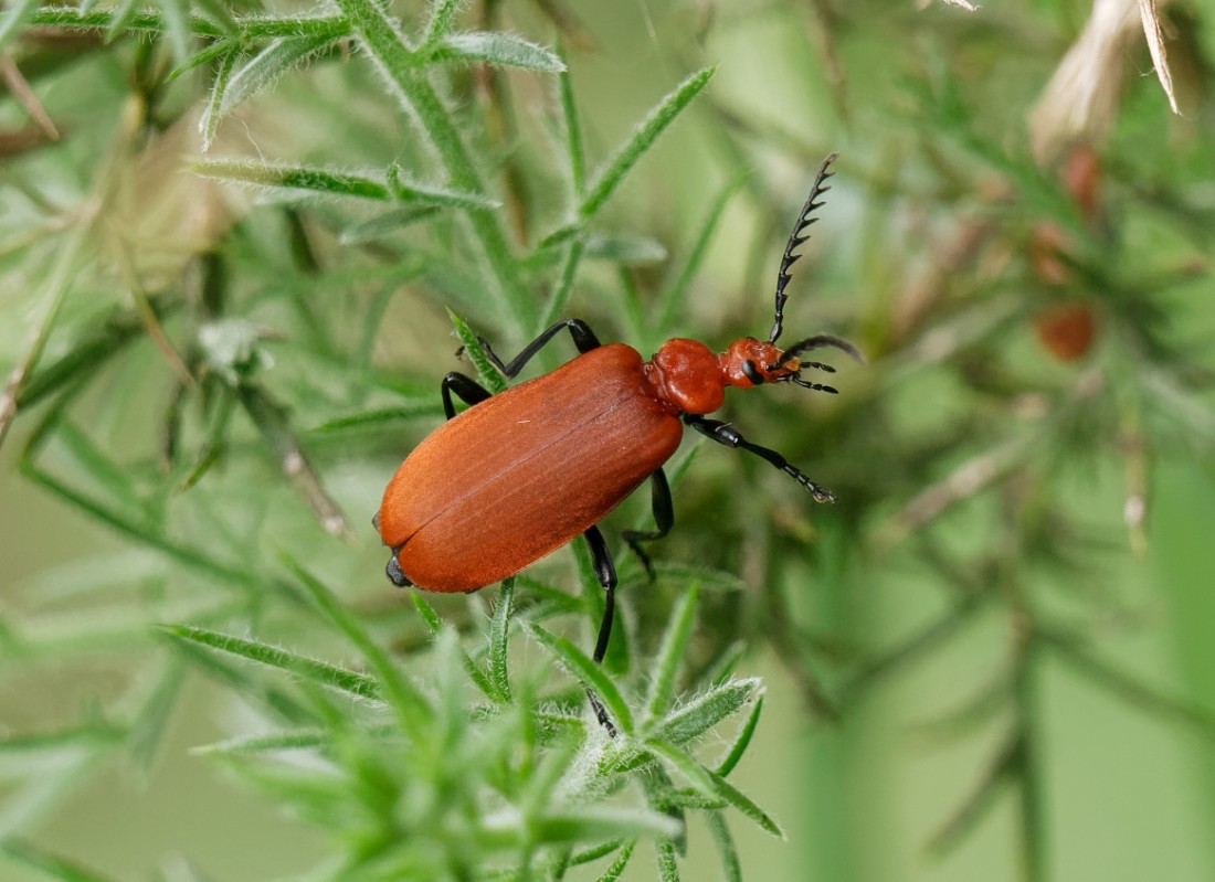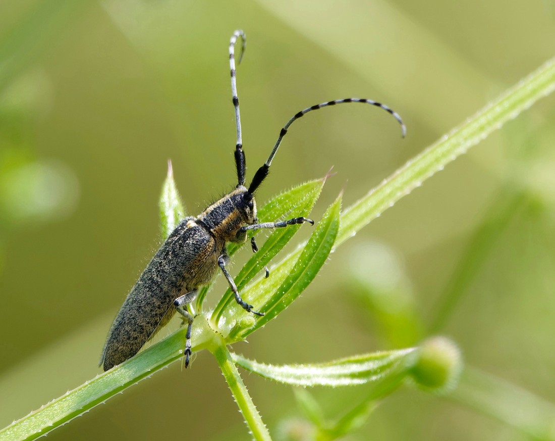 Another bake-hot morning at Woolston Eyes was mainly taken up with two meetings on No.4 bed, though there was still time to finish with with an hour’s birding from the shade of the Morgan Hide. As well as the odd remaining adult Black-necked Grebe, I managed to locate four fully grown juveniles, which will be ready to leave any day now. Despite the heat, a few things were moving, including a Little Egret, a hunting Marsh Harrier and a Hobby which was catching dragonflies carried up by the thermals. Photo of a Golden-bloomed Grey Long-horned Beetle Cheers David