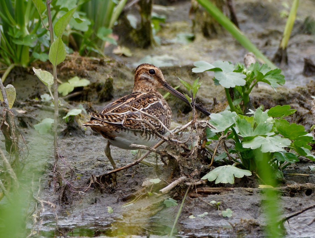 It made a real change, to arrive on No.3 bed to a cool easterly breeze and overcast skies after sweltering all week. Despite the favourable winds there was little sign of migratory movement over the bed, other than 3 Common Snipe which dropped in. There was still a handful of Black-necked Grebes to enjoy, though, along with hundreds of moulting Gadwall and the regular, hunting female Marsh Harrier. We decided to then head to No.4 bed to check out the continuing development of the new wetland, particularly for waders and dragonflies, finding, en route, a stand of 70 of Broad-leaved Helliborines, a relatively scarce orchid. While it was too cool for the dragonflies to be on the wing, we did flush quite a few which were warming up along the path, giving totals of: 15 Common Darters, 7 Black-tailed Skimmers, 1 Brown Hawker and a probable Southern Hawker. It was nice to find yet another new brood of Tufted Ducks on the western cell, while the eastern cell offered four more Common Snipe and 35 Lapwings on the chain of new pools. Photo of one of the Snipe Cheers David (with Helen Wynn, Brian Baird and Brian Martin)
