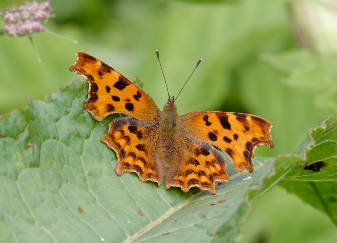 The day started well on No.3 bed, with 540 Gadwall in front of the Morgan Hide. This is a flock of national importance and approaching the required 600 to be of international importance. I later found another 20 on No.4 bed and no doubt there were more to be found on other parts of the Reserve. We get these large moulting flocks every June, though still have no idea where they come from! Other nice sightings included a hunting Hobby, a female Marsh harrier and a Green Sandpiper. The fine weather is starting to produce good numbers of butterflies and dragonflies, too, with totals of: 7 Black-tailed Skimmers, 5 Large Skippers, 3 Commas, 2 Speckled Woods, 3 Red Admirals and 20 Small Tortoiseshells. Photo of a Comma Cheers David