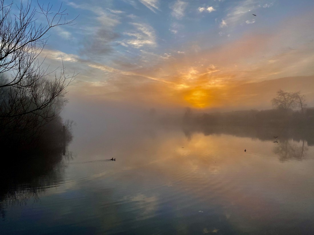 The first day of spring at brought a light frost, blue skies, a ground mist and a sunrise which would have had JMW Turner reaching for his paint brush. As ever, good weather at this time of year triggers breeding behaviour and on No.3 bed Mallard, Coot and Moorhens were mating, while Black-headed Gulls, Sparrowhawks, Buzzards and various wildfowl were displaying. Many species of passerine were also in song, most notably 3 Willow Tits, a Chiffchaff and 5 Cetti’s Warblers. Winter visitors were represented by 20 roosting Redwings and a few hundred Bramblings, both species which will have largely departed for their Fenno-Scandian breediing grounds by the end of April. On No.4 bed 3 more Willow Tits were in song and 6 pairs of Lapwing were displaying. If the weather continues to be kind we should be seeing our first returning summer migrants within a week or two, with Chiffchaffs, Sand Martins and Black-necked Grebes among the first to arrive. Photo of sunrise over the Ship Canal Cheers David Bowman