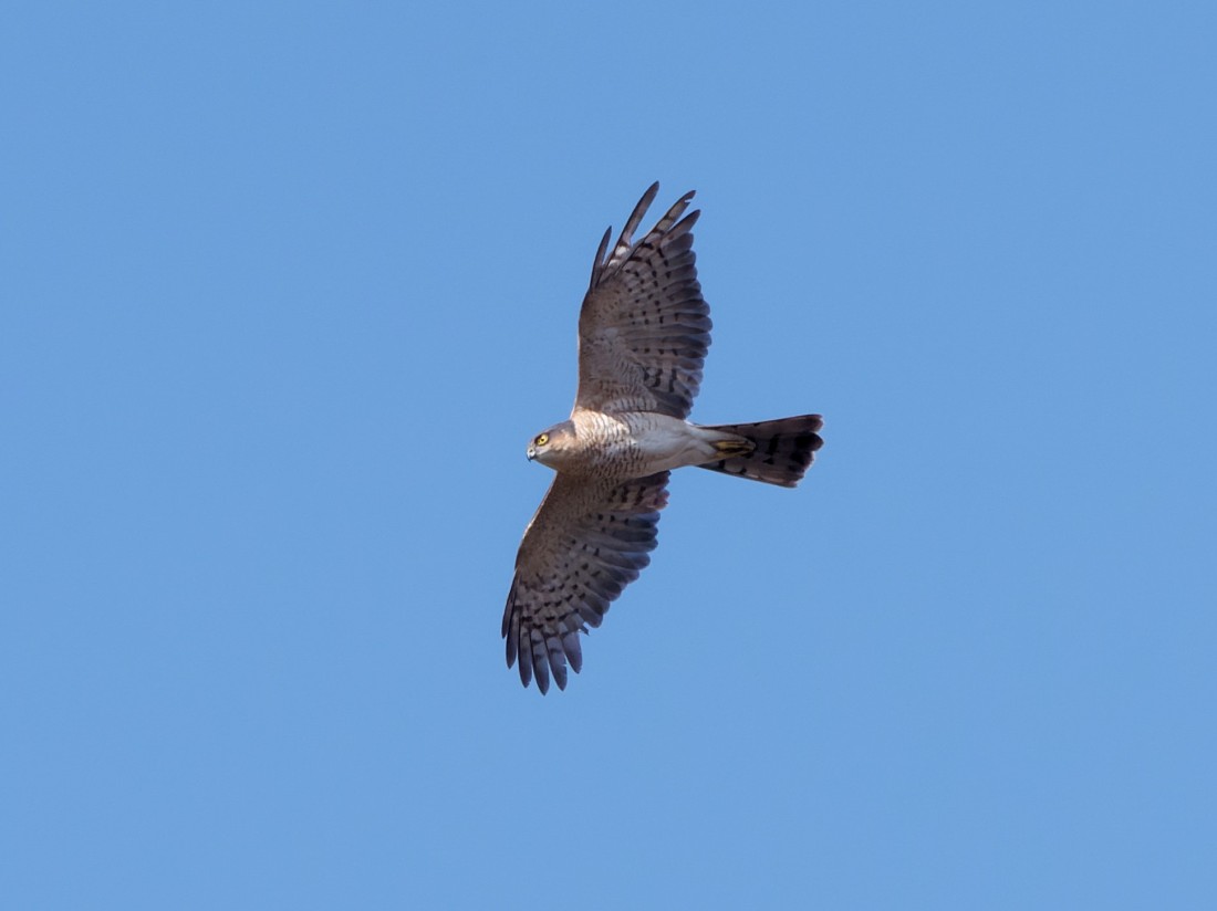 With the weather about to shift to an airflow from the Arctic, this might have been the last in a long run of pleasant spring mornings, at least for a few days. Although we’ve already had substantial arrivals of Black-necked Grebes and Chiffchaffs, most other migrants have barely trickled through, due to adverse weather around the Mediterranean. After a dawn start, Daniel Owen and I covered both Nos.3 and 4 beds and ended up with some decent counts, including: 2 Garganey, 2 Sand Martins, 4 Willow Warblers, 8 Blackcaps, 24 Black-necked Grebes, 150 Bramblings, 88 Chiffchaffs, 5 Willow Tits, 1 Pintail, 1 Mediterranean Gull (reported by Mike Miles) and 5 Marsh Harriers. The latter were all soaring together, 2 males and 3 females and a record count for the Reserve. Photo of a male Sparrowhawk Cheers David Bowman