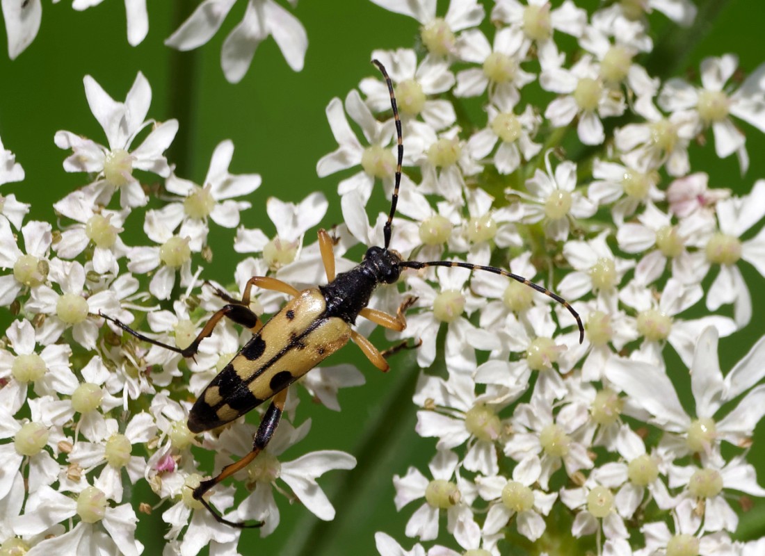 On No.4 bed 40 Swifts and a handful of Swallows, House Martins and Sand Martins were hawking for insects, while 60 Gadwall, 55 Coot, 17 Shoveler plus a few Little Grebes, Pochard and Tufted Ducks were out on the water. As the water level drops, due to the continuously dry weather, numbers of fish become more concentrated and four Grey Herons and a Kingfisher were taking advantage on the Loop of the bed. Then it was into No.3 bed where 44 Black-necked Grebes are still present (including 29 young) and 62 large young Black-headed Gulls were raucously demanding food from increasingly disinterested parents. The arrival of the regular female Marsh Harrier then flushed more than 200 Gadwall from cover, along with the odd Wigeon, Teal and Shoveler. Late morning the focus shifted to smaller stuff and species of note included 26 Red-eyed Damselflies under the footbridge, a single Emerald Damselfly and a smart Black and Yellow Long-horned Beetle. Photo of the Long-horned Beetle Cheers David Bowman (with Daniel Owen)