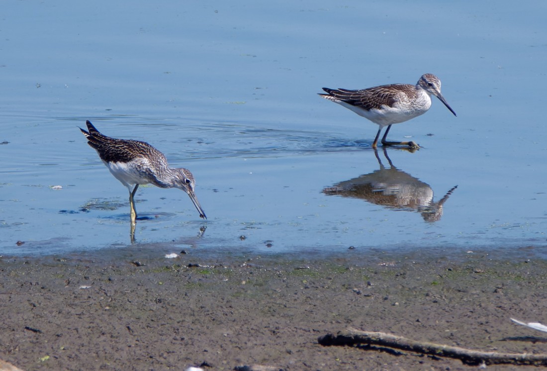 It was overcast and humid this morning, with not too much movement. Nevertheless, by early afternoon we’d accrued some decent sightings, including: 5 Garganey, 2 Black-necked Grebes (a moulting adult and a juvenile), a passing Common Tern, 4 Green Sandpipers, 2 Black-tailed Godwits, 7 Common Snipe, a Hobby chasing Magpies, 6 Ravens drifting south in a group, a single Swift and a few hirundines. The link is to a short video showing some of the waders from the last two visits, including the Greenshanks from Saturday and today’s Hobby. https://youtu.be/tsfMTF4GtGc Photo of Saturday’s Greenshanks Cheers David Bowman (with Dan Owen)