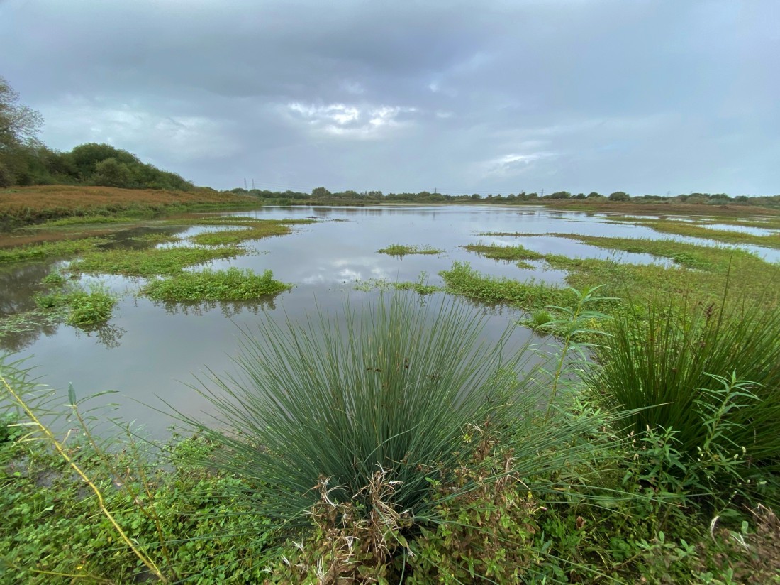 Nice to be back at Woolston after three weeks away in Sweden, with plenty of good birds to be found. No.3 bed at dawn was fairly quiet, with highlights of 5 Redwings, 180 Pink-footed Geeses heading west, 1 Black-tailed Godwit, a juvenile Marsh Harrier, a hunting Peregrine, 2 Wigeon, a couple of Water Rails and 82 Shoveler. While I’ve been away the water levels on the No.4 bed wetland have risen noticeably, which is pleasing, with counts of: 3 Jack Snipe, 18 Common Snipe, 1 Curlew, 10 Black-tailed Godwits, 2 juvenile Marsh Harriers, 2 Little Egrets, another 75 Shoveler and a Wigeon. Photo of the No.4 bed wetland Cheers David